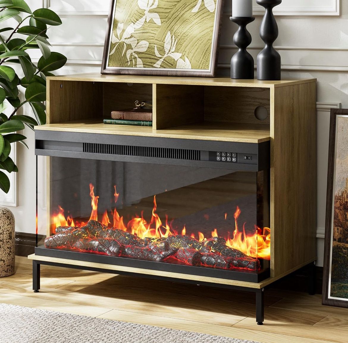 TV Stand for 55” TVs – Fireplace Slot + Storage