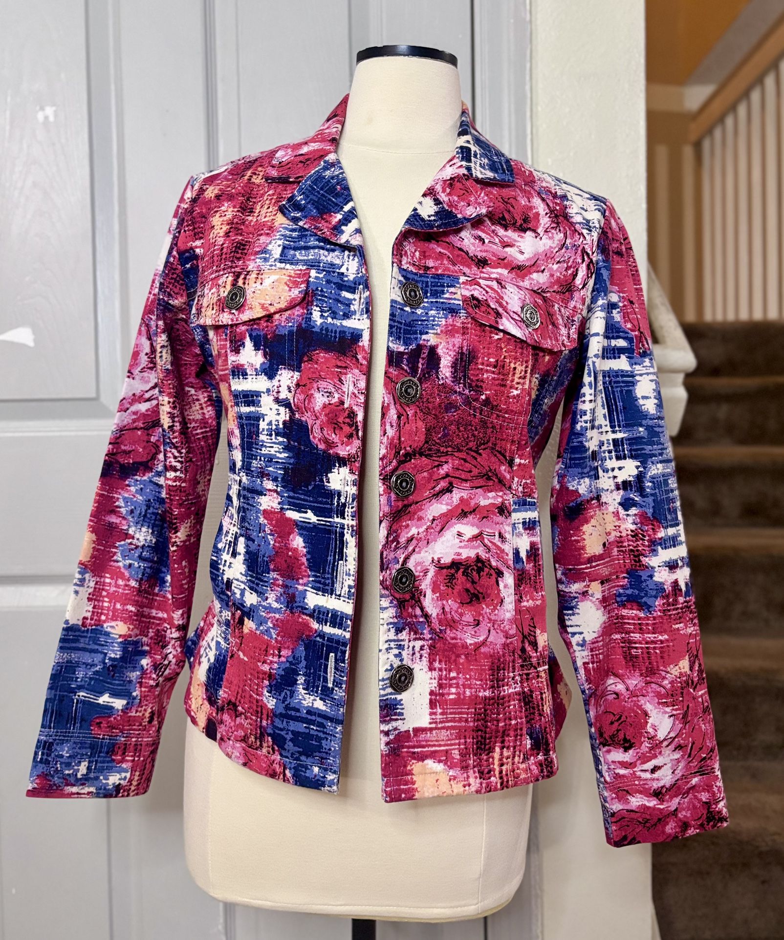 Chico’s Button Up Lightweight Utility Jacket Women’s Sz 0 Small Patriotic Vintage