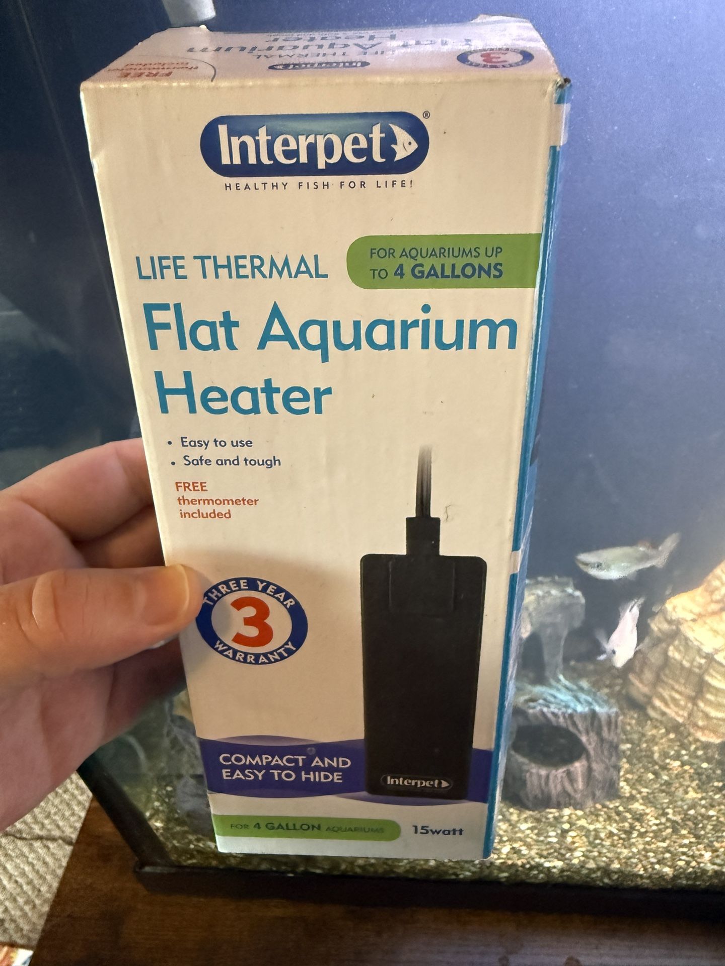 Life Thermal Flat Aquarium Heater ( Up To 4 Gallons) Ended up getting a bigger tank and needed a different heater. This was only used for 4 days! :)