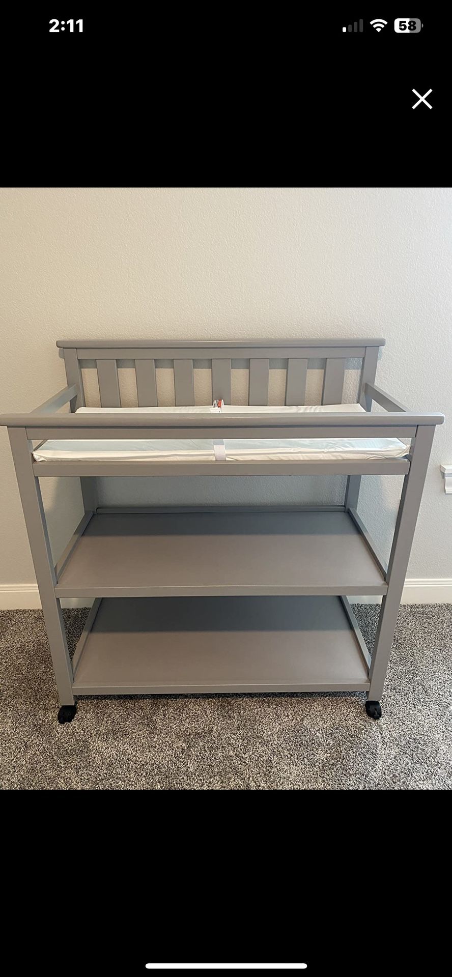 Delta Children Flat Top Changing Table with Wheels and Changing Pad -Gray