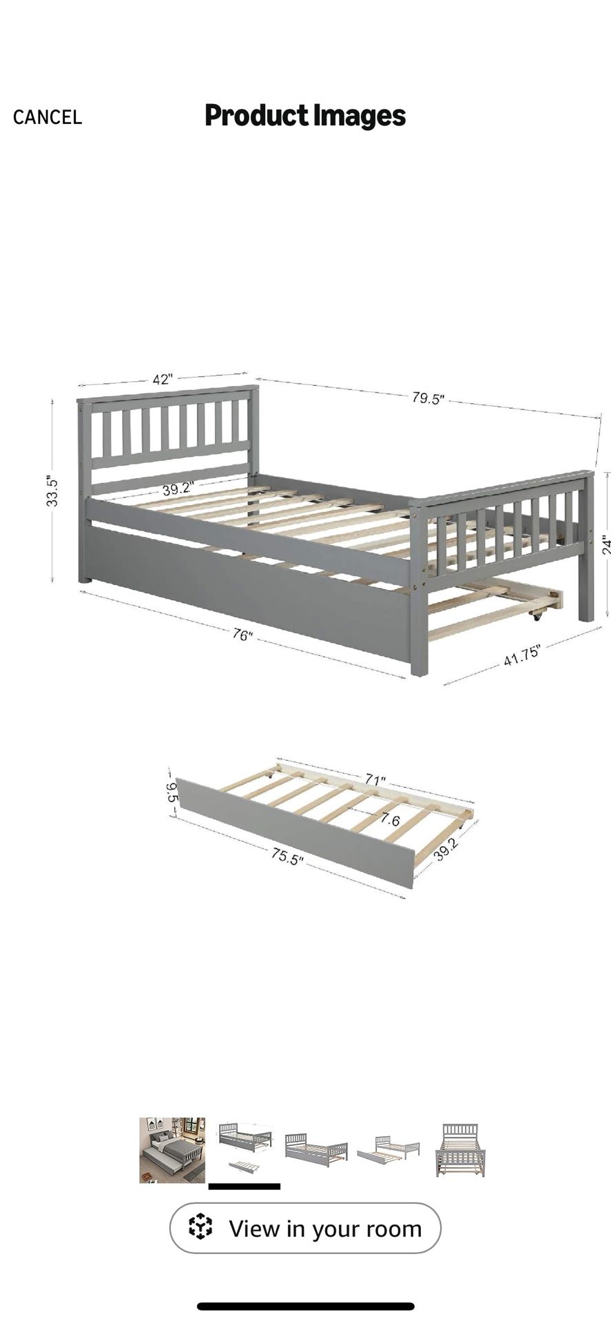 Twin gray bed frame 160$ OBO pick up only