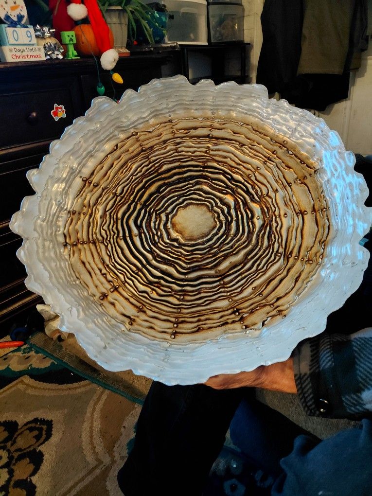 Blue and Gold, approximate 15 inches in diameter. Made of glass with Blue and Gold paint.