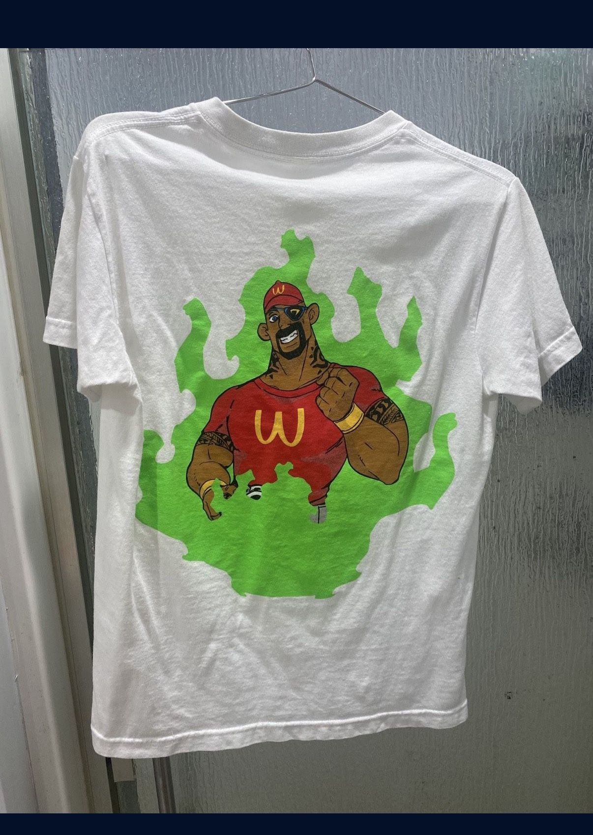 ONLY A FEW OF THESE EXIST! BRAND NEW! This rare McDonald's pop-up shirt is a must-have for any anime or manga fan! Featuring a unique design, this shirt was exclusively available to invited guests at the LA pop-up location and is sure to be a conversation starter. The shirt is brand new and has never been worn, allowing you to add it to your collection in pristine condition. Size Small. Fits as a snug Medium also.