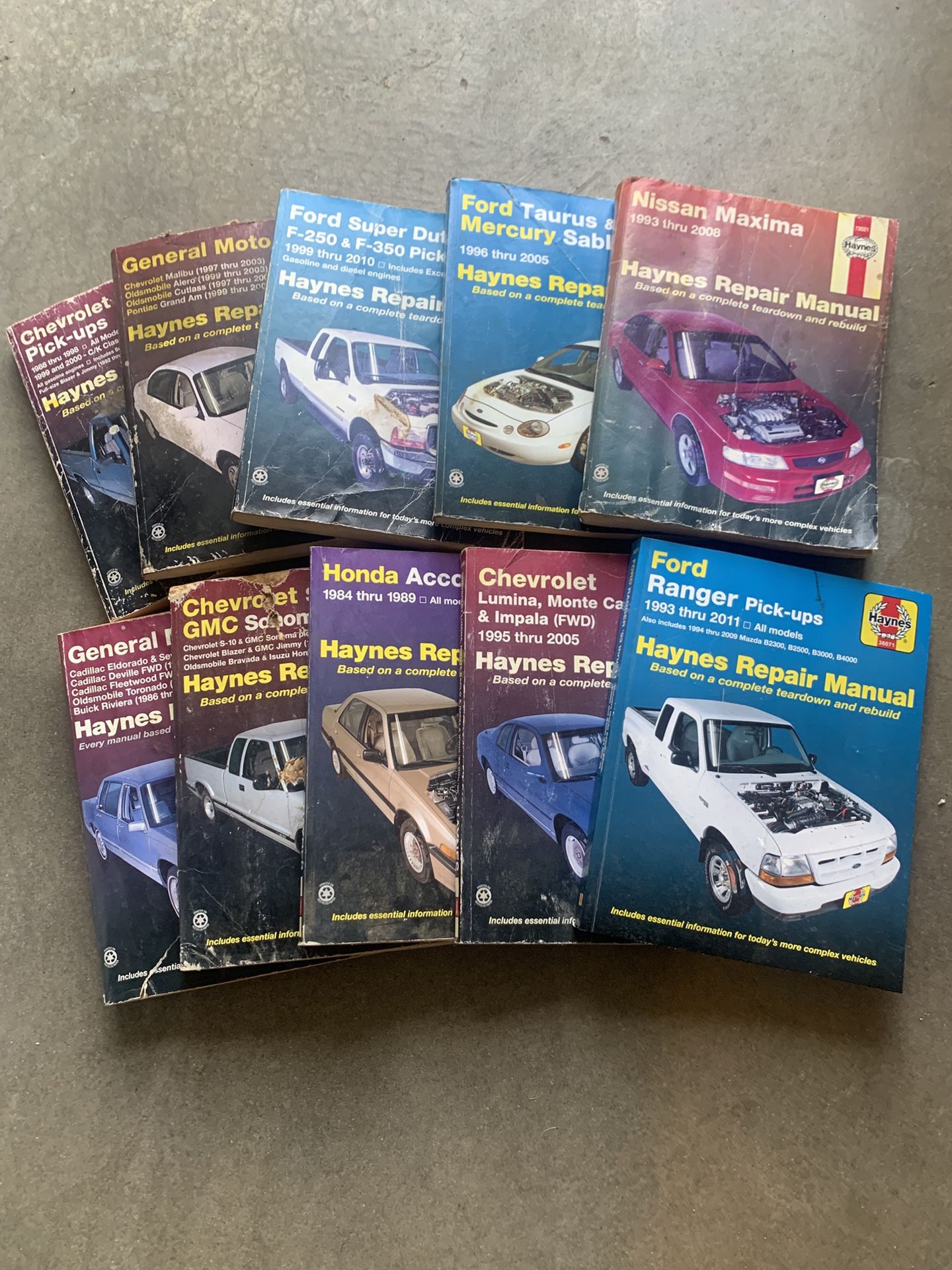 10 Haynes repair manuals. Selling all 10 for $30 local pickup