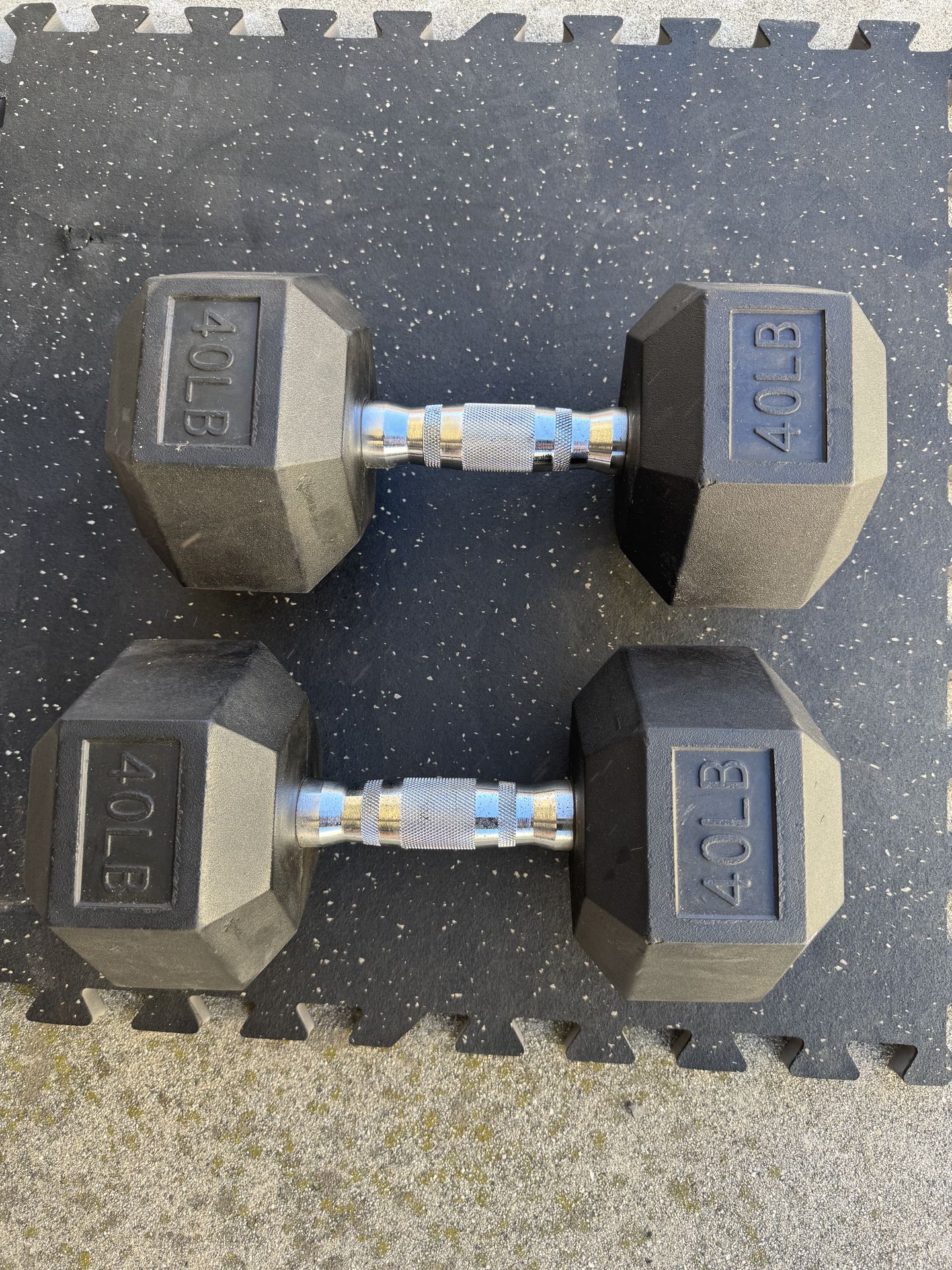 Selling a pair of Titan Fitness 40 lb rubber hex dumbbells. • Rarely used — like new condition • Always kept indoors (no weather wear) • Heavy-duty, gym-quality dumbbells with rubber coating to protect floors $80 - firm Pick-up only. Feel free to message with questions .