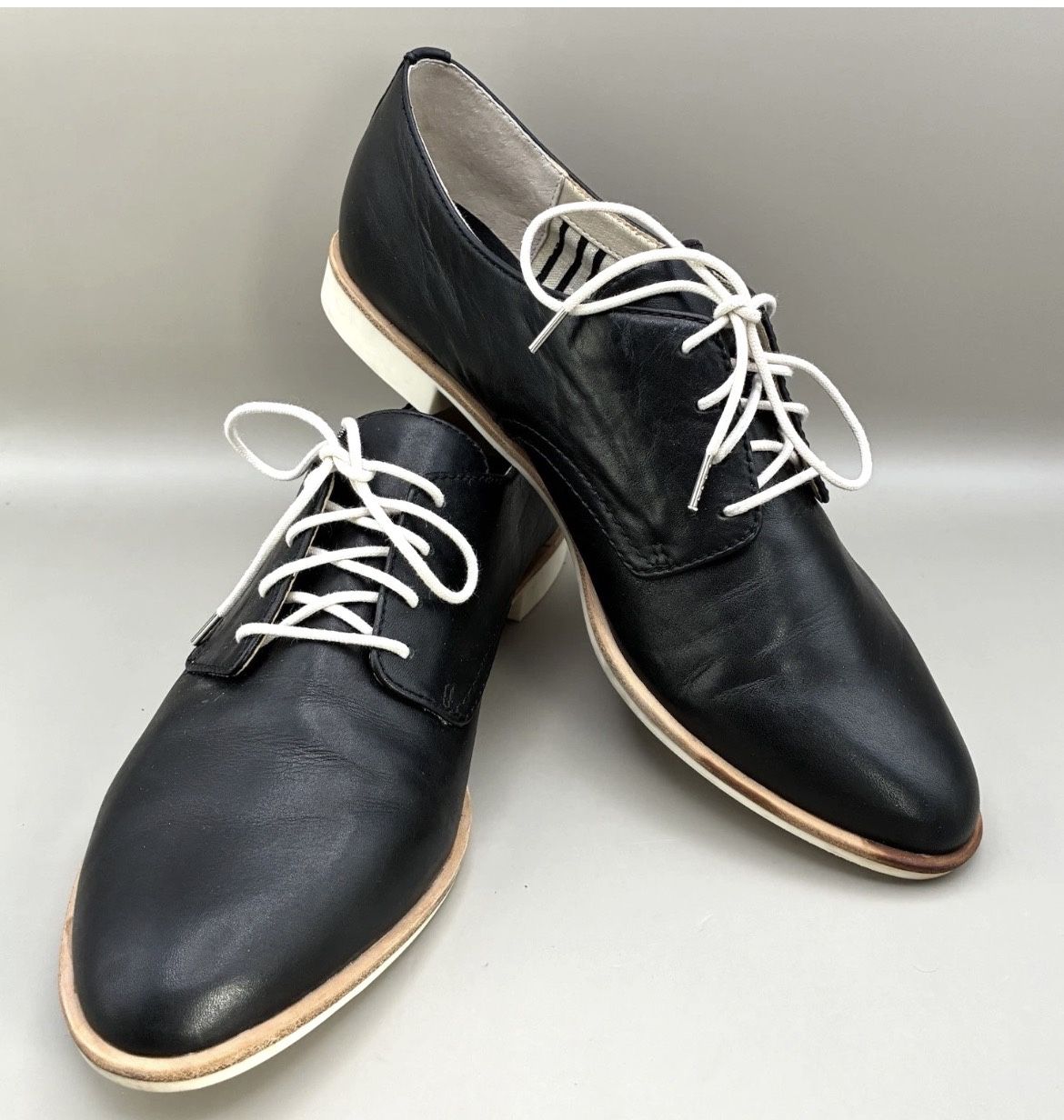 Pickup near Griffith Park. Cash only. Best offers accepted. Dolce Vita Women’s Black Leather Oxford Shoes • Women's Size 10 • Lace-Up Flats • New Without Box Overview: Timeless Dolce Vita women’s oxfords crafted from genuine leather with natural grain and light creasing visible in the photos. These shoes feature a clean almond-toe silhouette, minimalist profile, and the brand’s signature striped textile interior lining. Designed for polished everyday wear, they pair easily with office looks, business casual outfits, or elevated weekend style. Lightweight construction and cushioned interiors keep them comfortable throughout the day. Features Women’s lace-up oxford style Genuine leather upper with natural grain and soft creasing Almond/pointed toe for a refined, slimming profile Tan stacked-look welt trim Thick white rubber outsole with subtle micro-texture for traction Flat cotton laces (ivory/white) Signature striped textile interior lining Cushioned footbed Lightweight, low-profile construction Materials Upper: Genuine leather Interior: Striped textile lining, cushioned insole Outsole: White rubber Condition: Soles show light discoloration from storage but no wear. Leather uppers show minor factory surface marks typical of genuine leather. Insoles, heel caps, and laces are clean and unused.