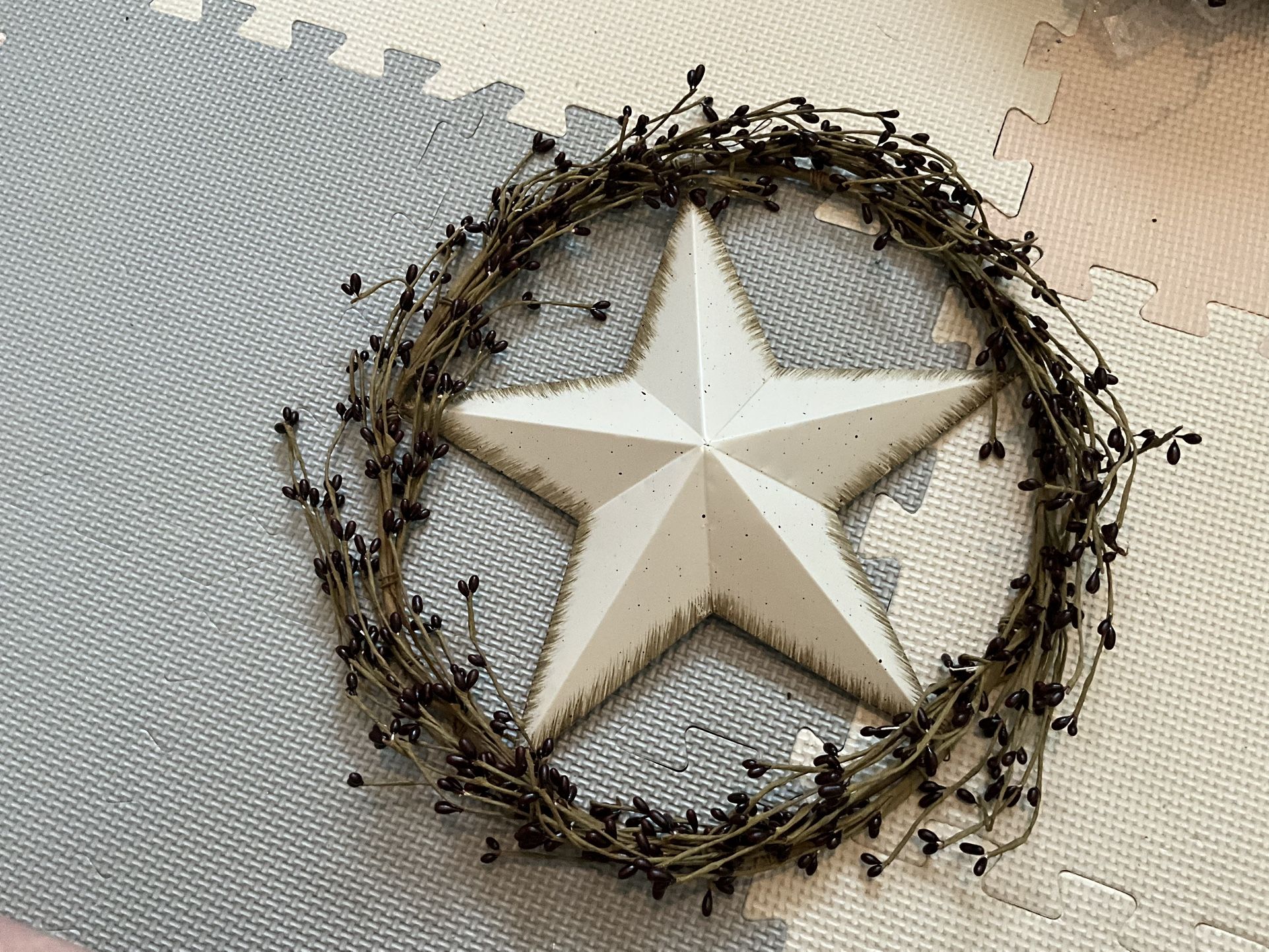 I have a total of 6. These wreaths are 13” wide. $10.00 each or 6 for $ 45.00 I also have two RED metal and one DARK BLUE star with no wreath and the same size as the white star and I will just place them in this bundle. They are also brand new with tags.