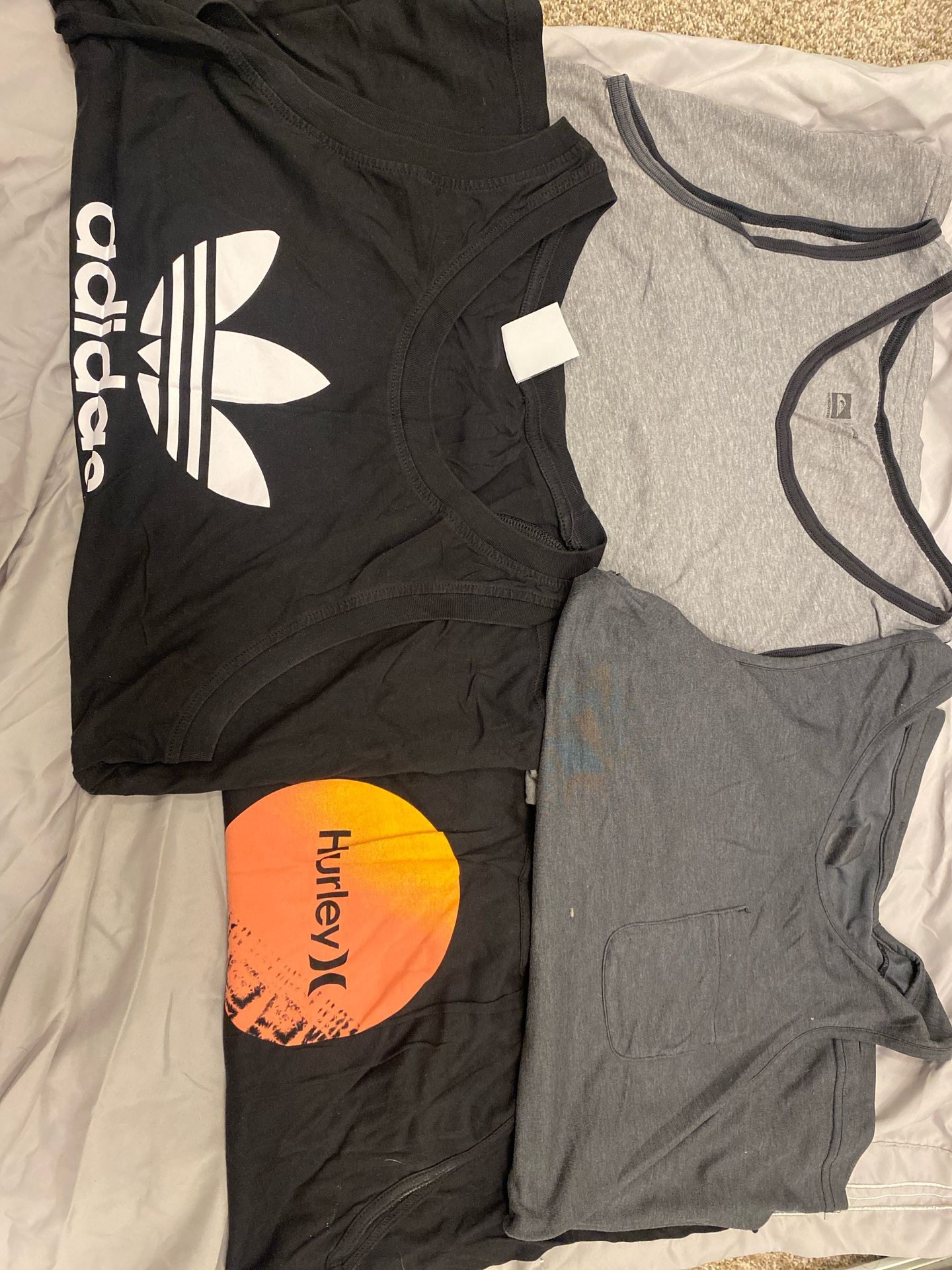 The North Face, quicksilver, Hurley, Adidas. Size large.