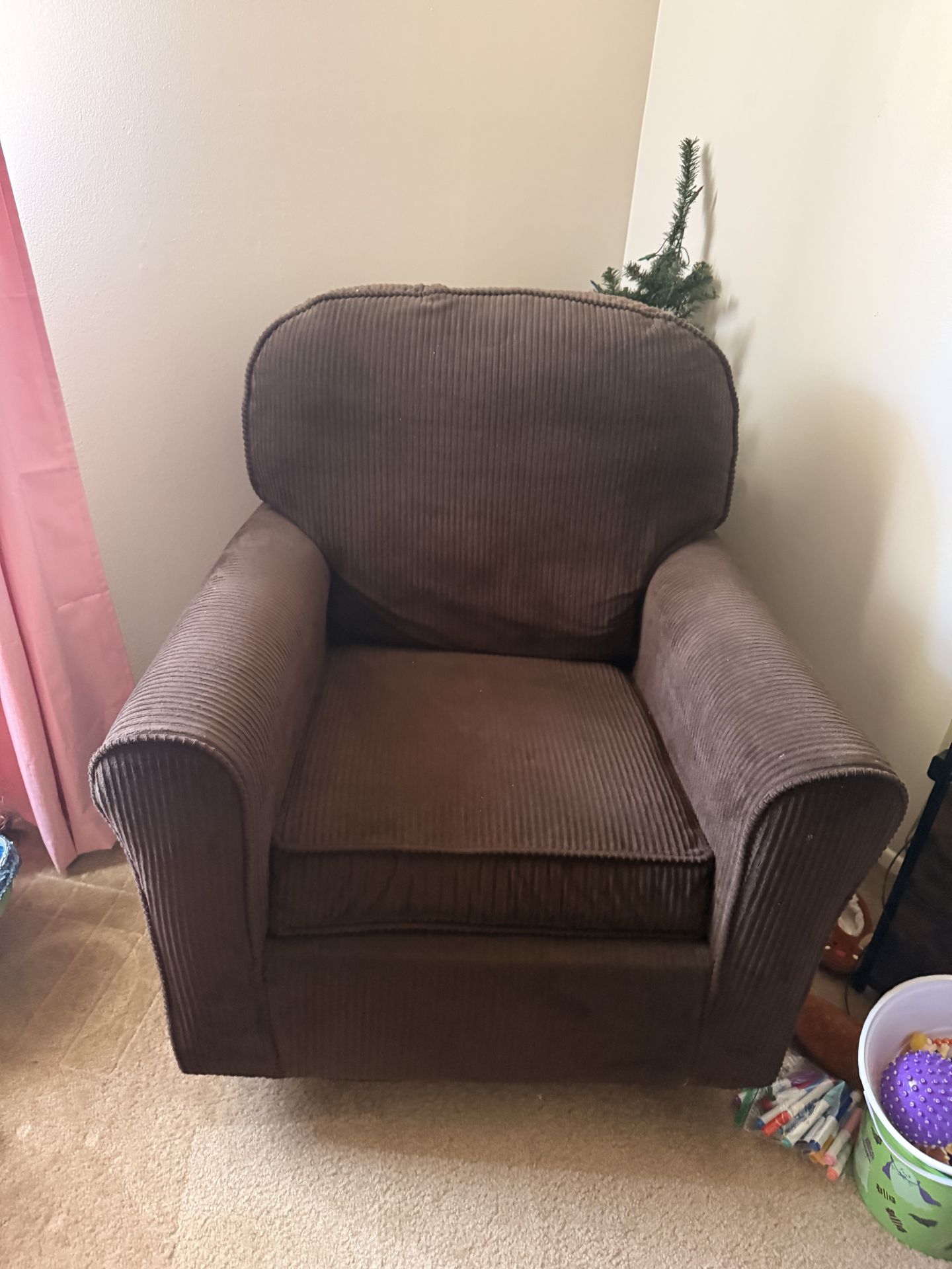 Brown rocking chair. Good condition. No leg rest and does not recline.