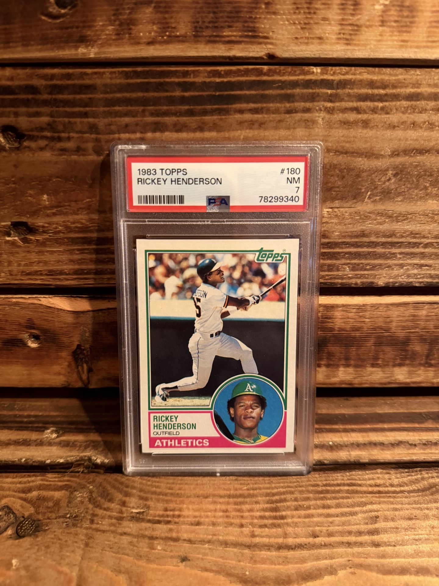 Start your PSA collection by owning this historic memorabilia slab with Rick Henderson PSA 7 1983 Topps Baseball card, graded NM/MT 7, #180 If interested Welcome to trades Raw & PSA as well: UFC Soccer One Piece Jordan’s Kobe’s LeBron Brady’s Catlin