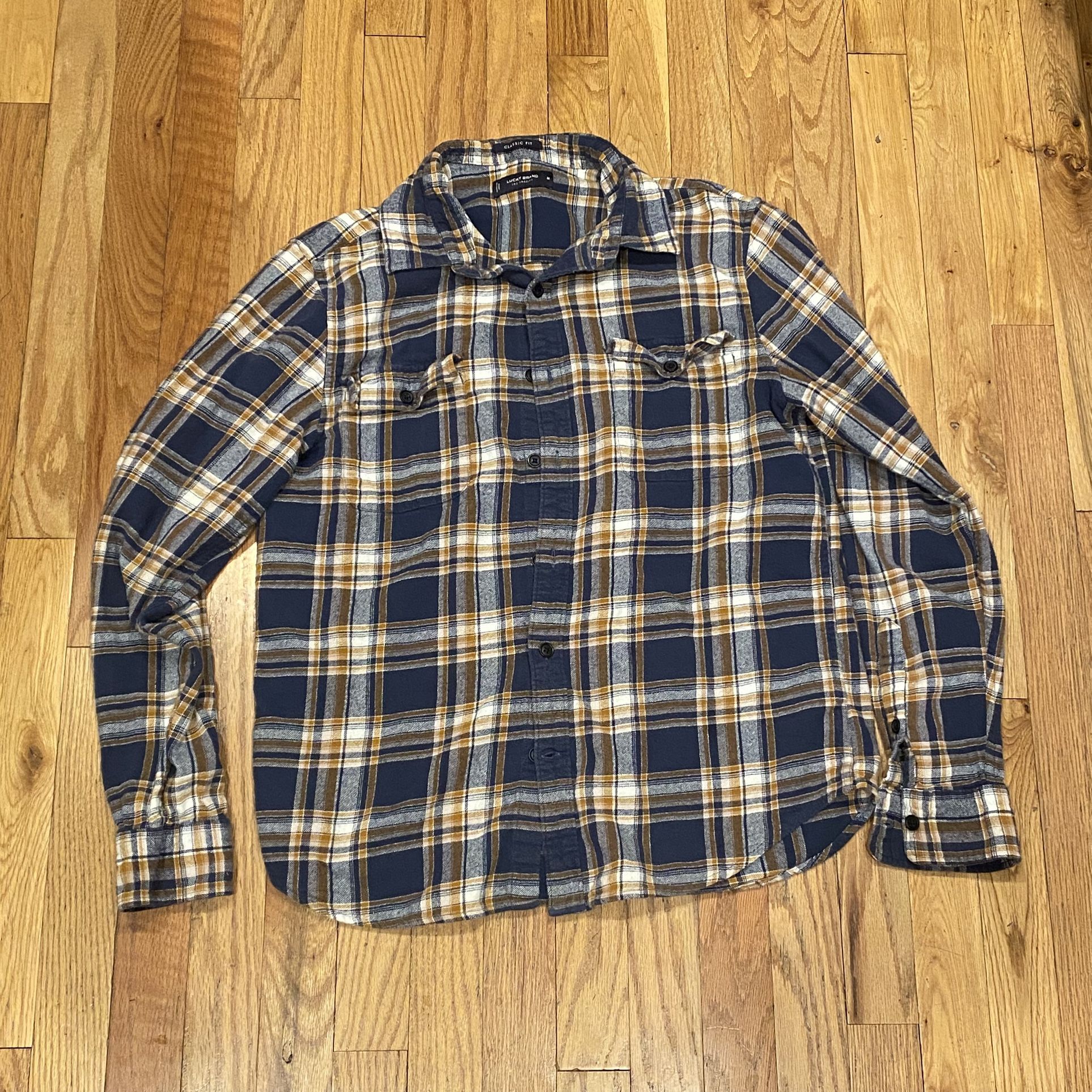 Lucky Brand Men's Blue and Yellow Plaid Flannel Shirt