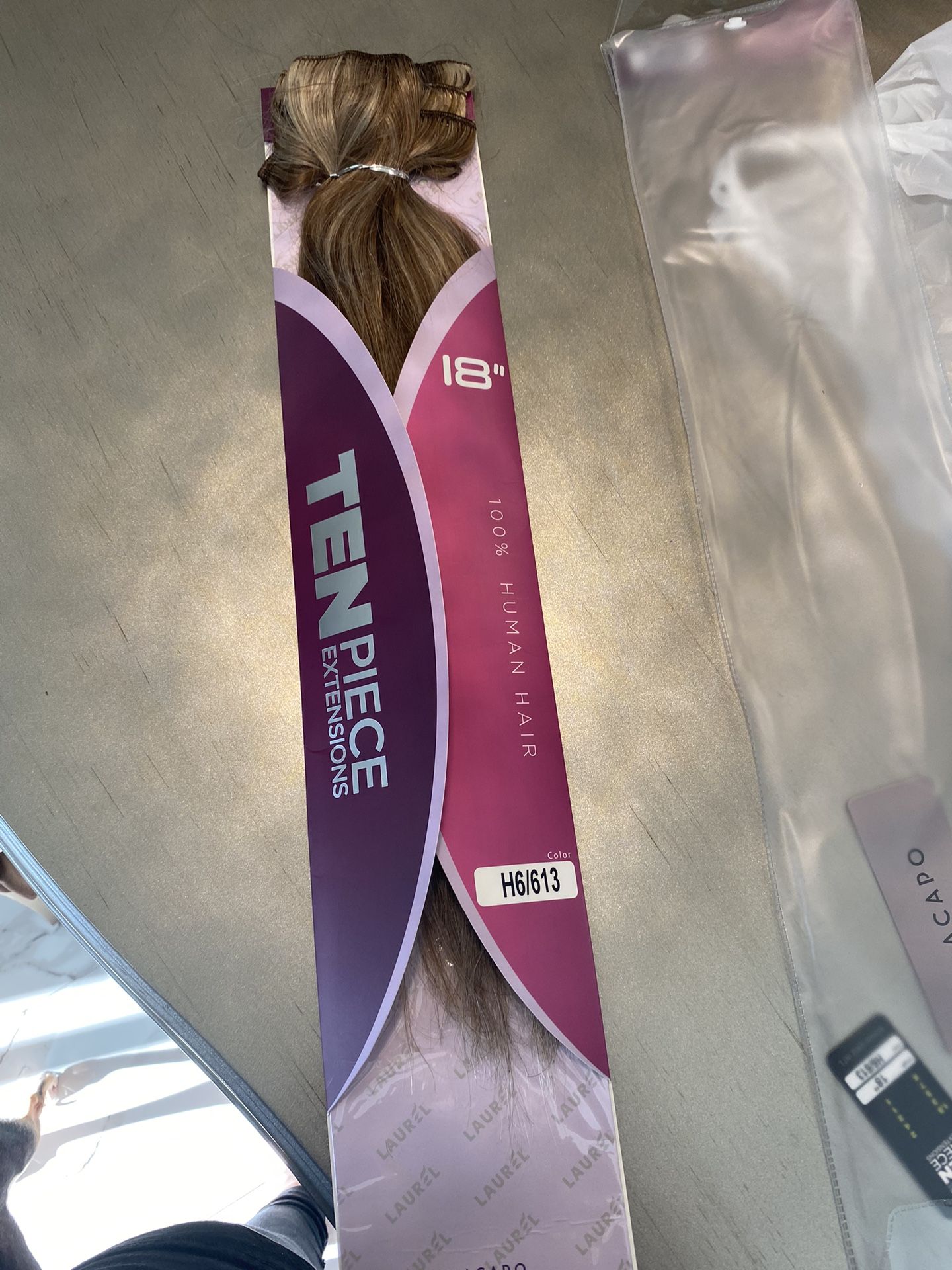 100% human hair New never been used Color h6/613 18 inches Brand :Dacapo