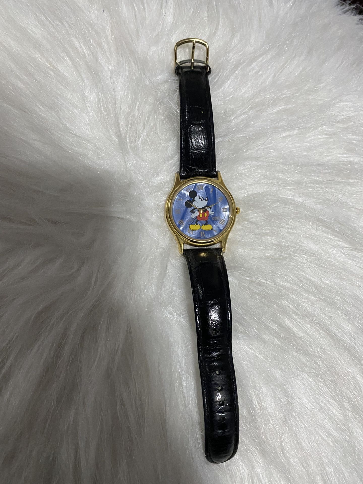 Vintage Lorus Quartz Mickey Mouse Disney Watch V500-7A30 Black Leather