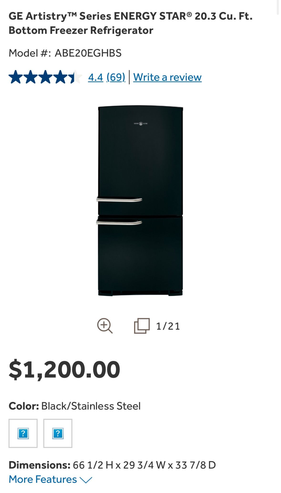 GE Artistry™ Series ENERGY STAR® 20.3 Cu. Ft. Bottom Freezer Refrigerator Dimensions: 66 1/2 H x 29 3/4 W x 33 7/8 D Taken out of a renovation project and has been in storage for a bit. There are small marks in the photos on the front. The drawers have cracks on the back as shown in photos. Definitely works! Photos of the lights on. Would be great for a garage fridge We can deliver for an extra fee, dependent on how far you are from west Seattle