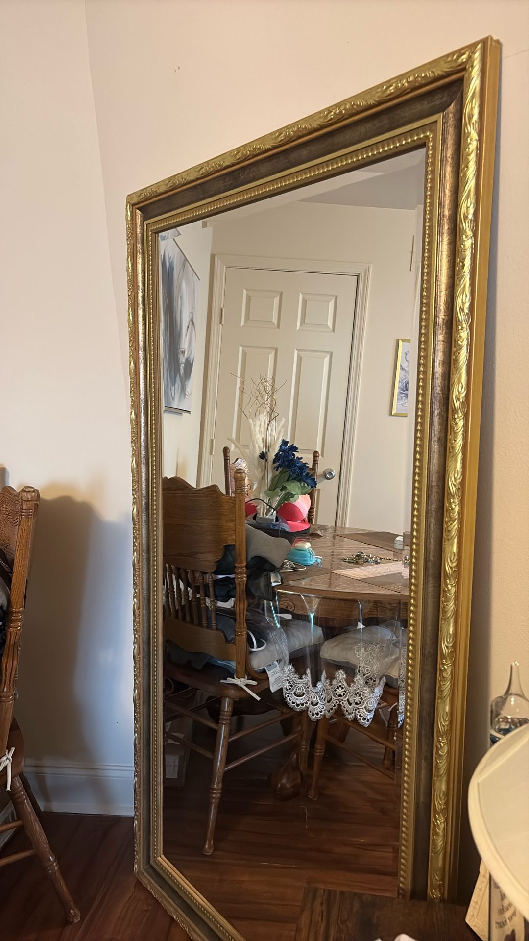 This mirror has a gold and brown frame. No scratches. Size is 37 1/4” x 67” x 1 1/2”. This would be a great addition to your family room or bedroom. Will consider offers