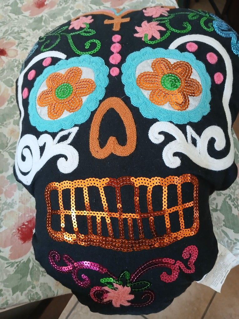 This pillow would make a great decor ,for Halloween. Or for"Dia de los Muertos.