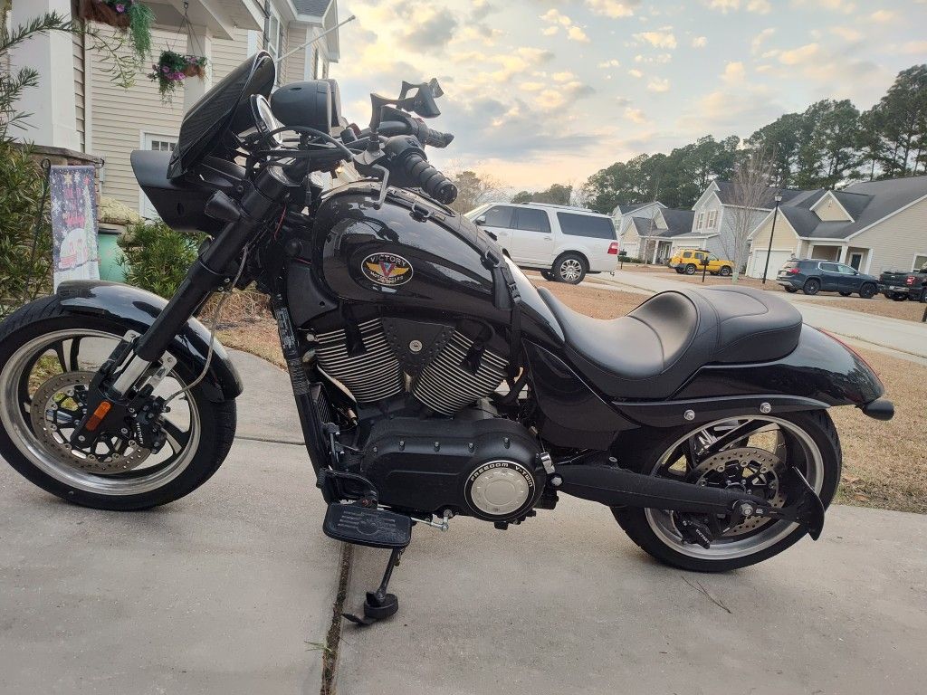 This is a 2012 victory hammer 8 ball, it has 6200 miles on it. It runs and cranks fine I had an issue with the electrical system shutting of randomly, I replaced the rectifier and it seemed to have stopped the issue, but it could also be a ground fault or bad battery. It has Bluetooth speakers installed not much work has been done to it I replaced the front headlight and turn signal lights. Could use an oil change. I'm asking $3000 OBO. I'm not desperate but would like to sell as soon as possible. It's been sitting in my office warehouse out of the cold. Will have new battery installed. If you would like to see a video of it running message me and I'll send it.