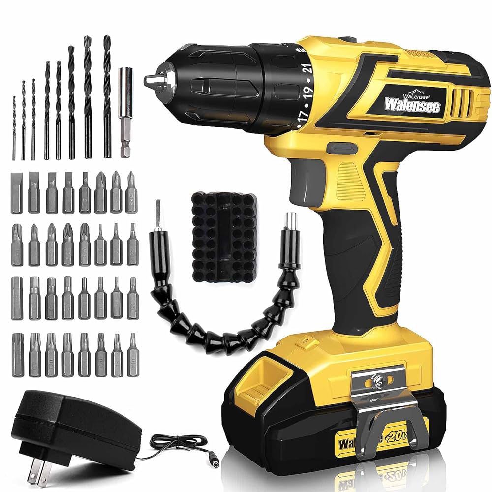 Walensee 20V Cordless Drill Set, Power Drill Driver with Variable Speed Control, Impact Drill with Battery & Fast Charger, 32pcs Bits Accessories Keyless Chuck, Electric Screwdriver Tool Kit for Home