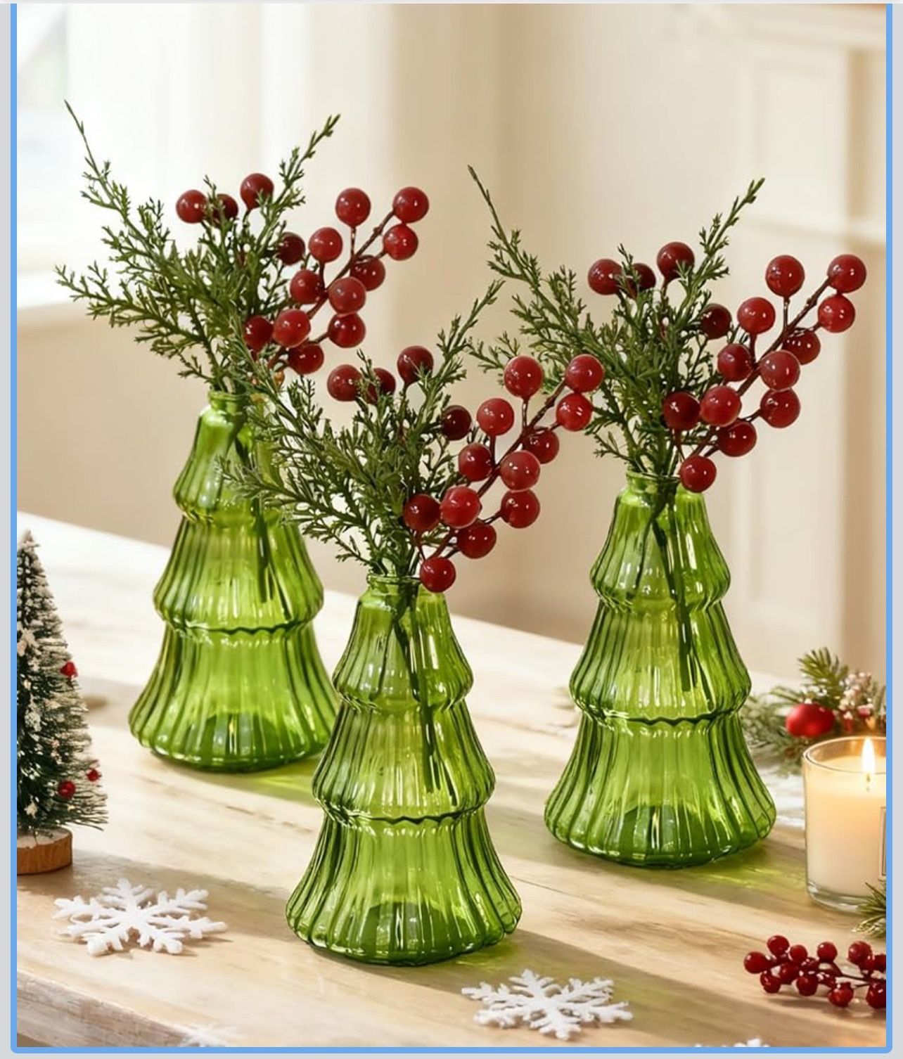 Nacome Christmas Tree Propagation Stations: 3PCS Plant Terrarium Glass Vases for Home Office Decor, for Plant Lovers Women Mom (Green)