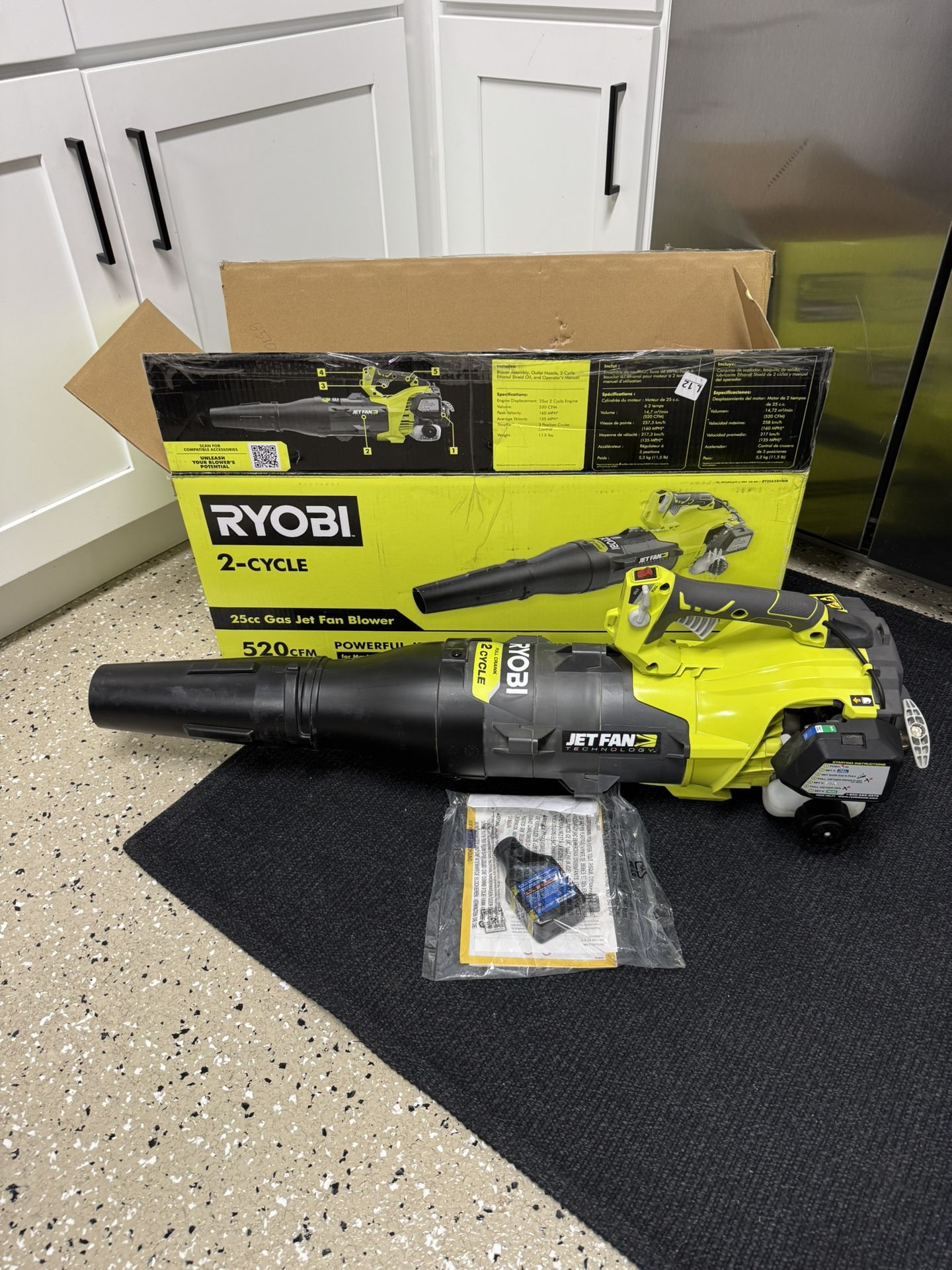 RYOBI 160 MPH 520 CFM 25cc Gas Jet Fan Leaf Blower Looks new like it was never used. Fully tested and in working condition. What you see is exactly what you will receive. Includes a 24-hour warranty — if any issue occurs, I will exchange it for the same tool.