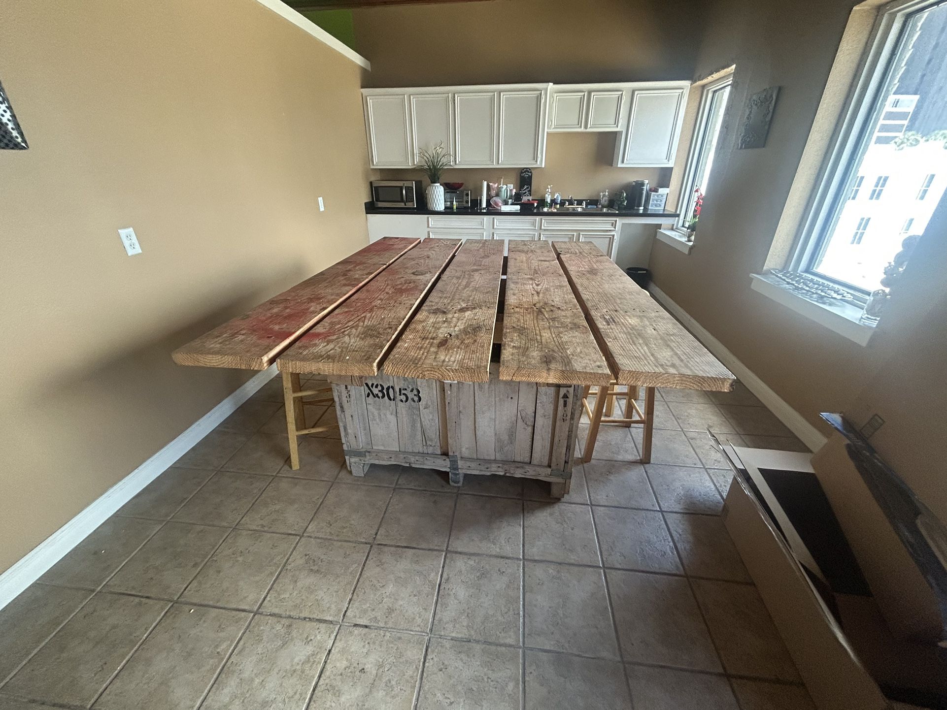 Custom heavy duty wood Meeting Table Or Break Room Table 6 Bar Stools price negotiable