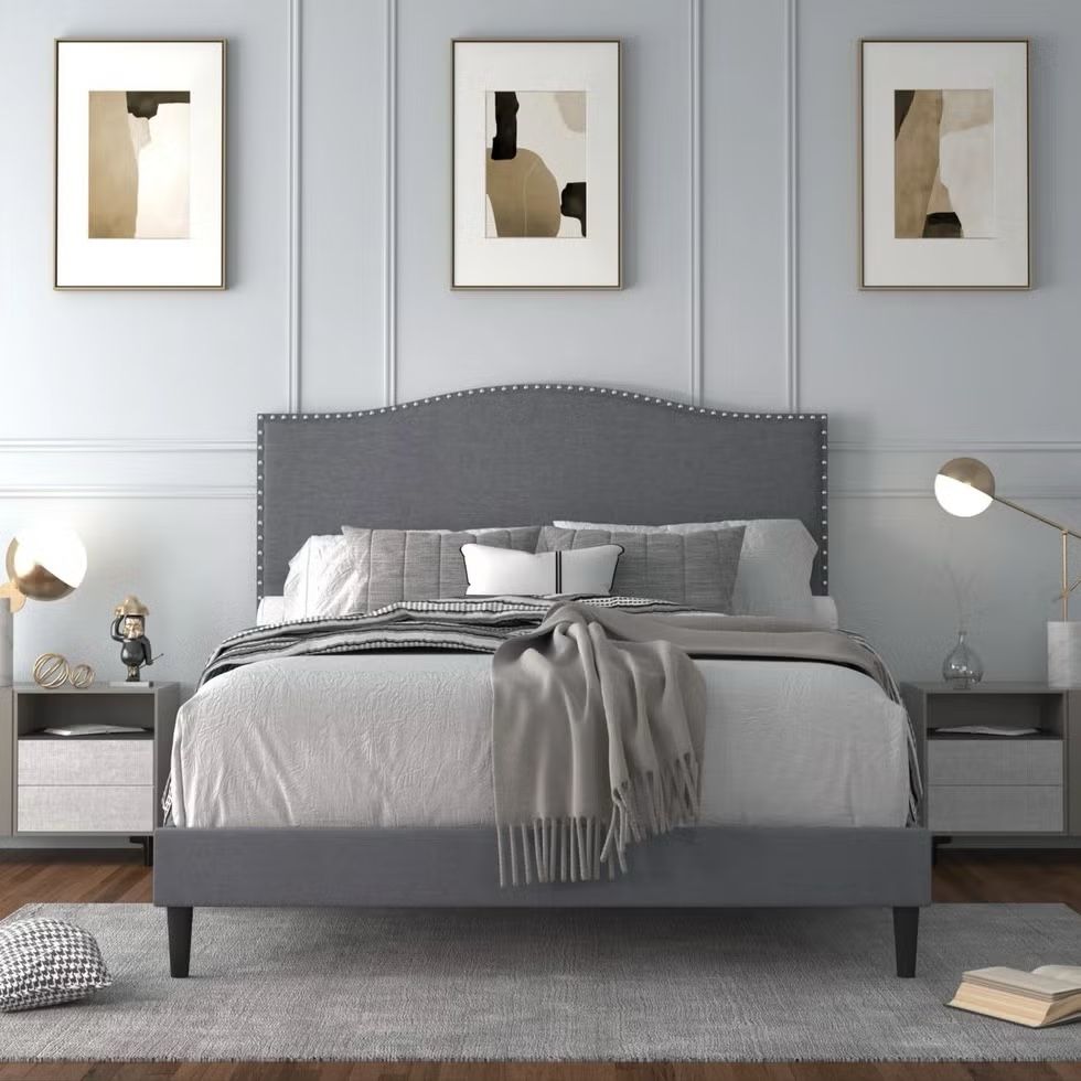 New in box Gray Upholstered Low Profile Platform Bed size full double
