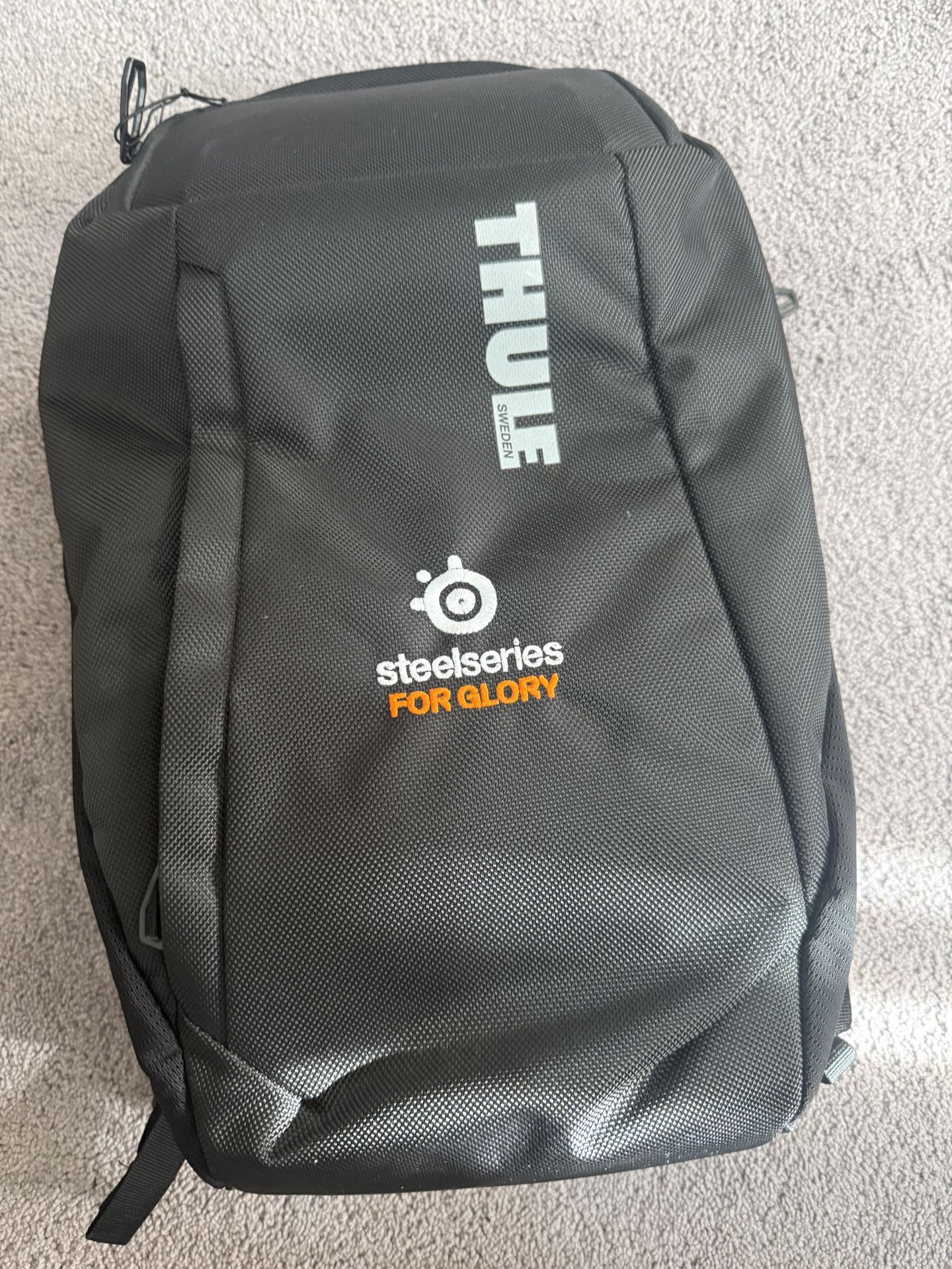 New Thule laptop backpack, This was a promo backpack w a logo embroidered on it as seen in pics. Was going to put a patch over it but got another one. Has a hardened pocket up top that would protect sunglasses.