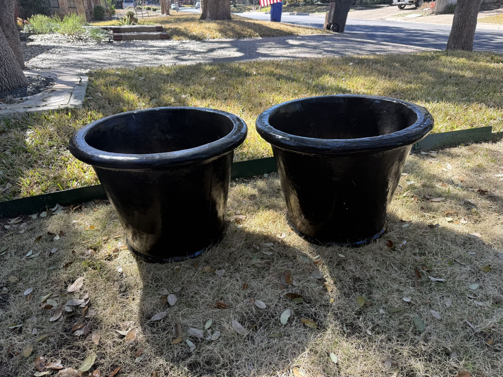 21 inch tall, 27 inch diameter. Concrete. $85 each at Lowe's