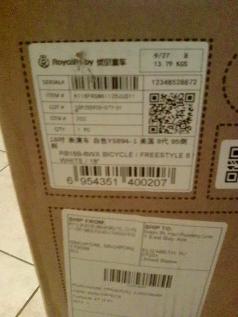 Must be able to pick up White 18 inch bike Comes with a brand new blue helmet
