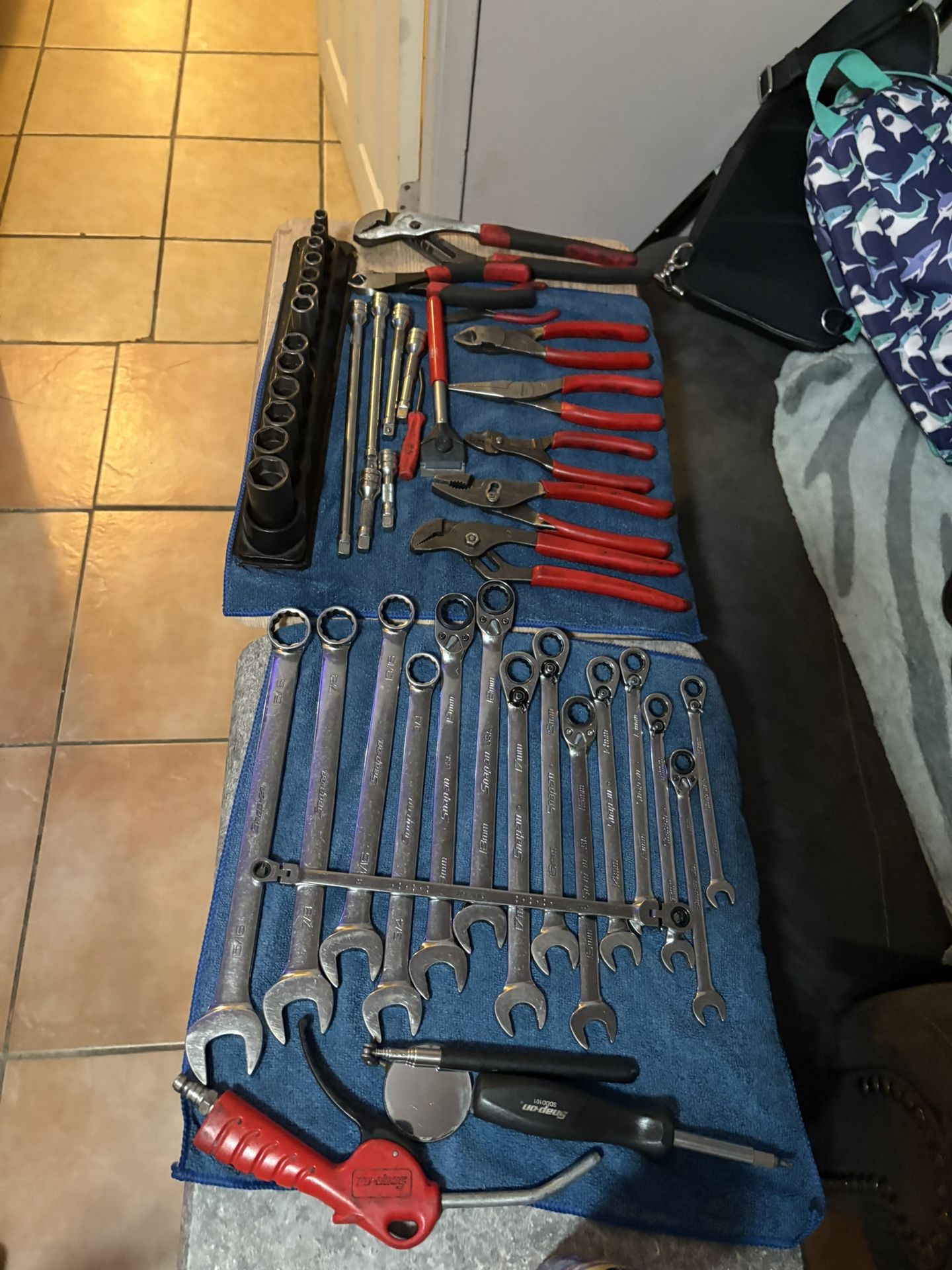 Bundle of tools all together.. Good Condition All Snap On Tools Ratcheting Wrenches 9pc 3/4 7/8 13/16 15/16 Wrenches 3/8 Impact Sockets 14pc 4pc Plyer set 3/8 Wabble Extensions 6pc 1/2 Digital Torque Ratchet {DMM} Digital Multi Meter Chisel set for Air Hammer