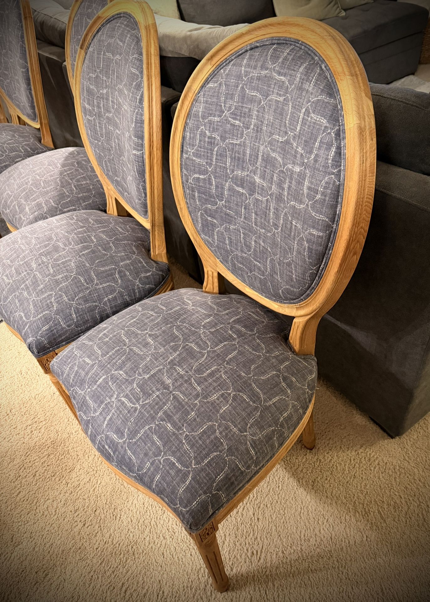 Total of 6 Charcoal Fabric with white design Seat Oval Back Dining Chair Set of 6. Asking $250