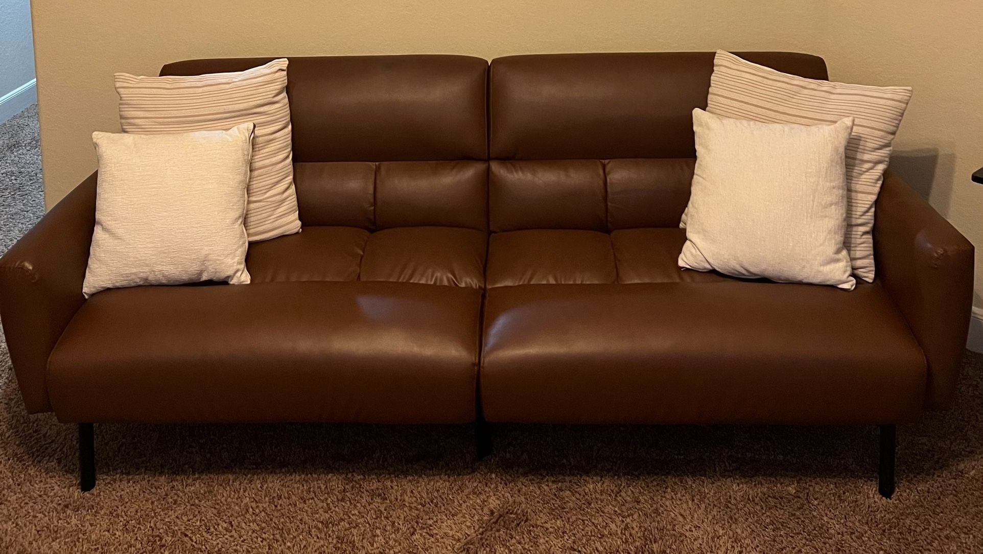 Turns into a twin sized bed. Like new - sits in an unused room. Does not include pillows.