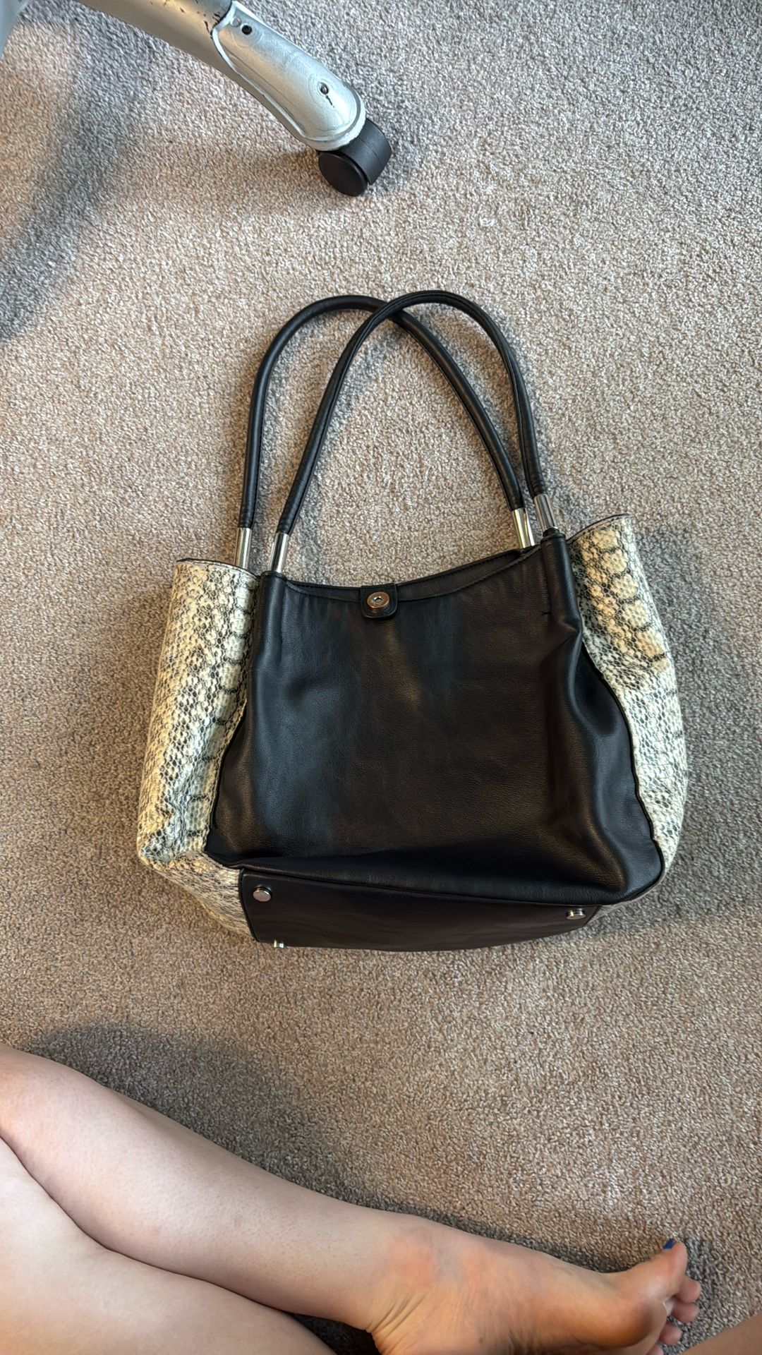 Alfani Black Faux Python Tote Bag