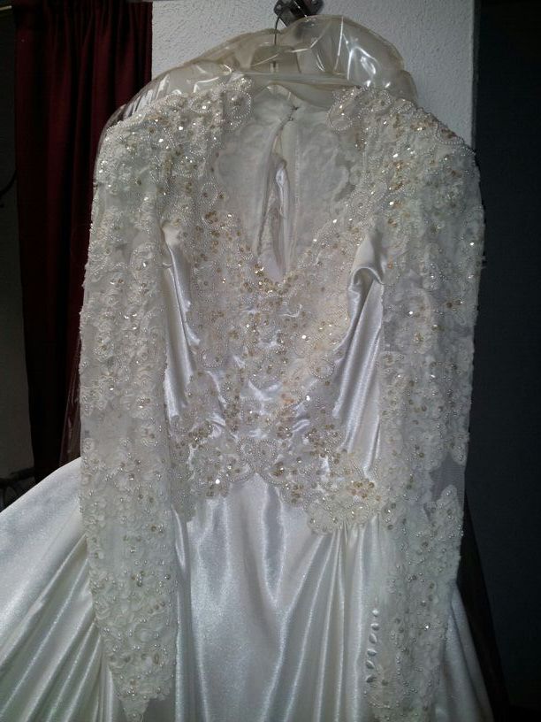 designer heavily beaded wedding dress ivory size 11/12 from a store that closed originally sold for$700 never worn