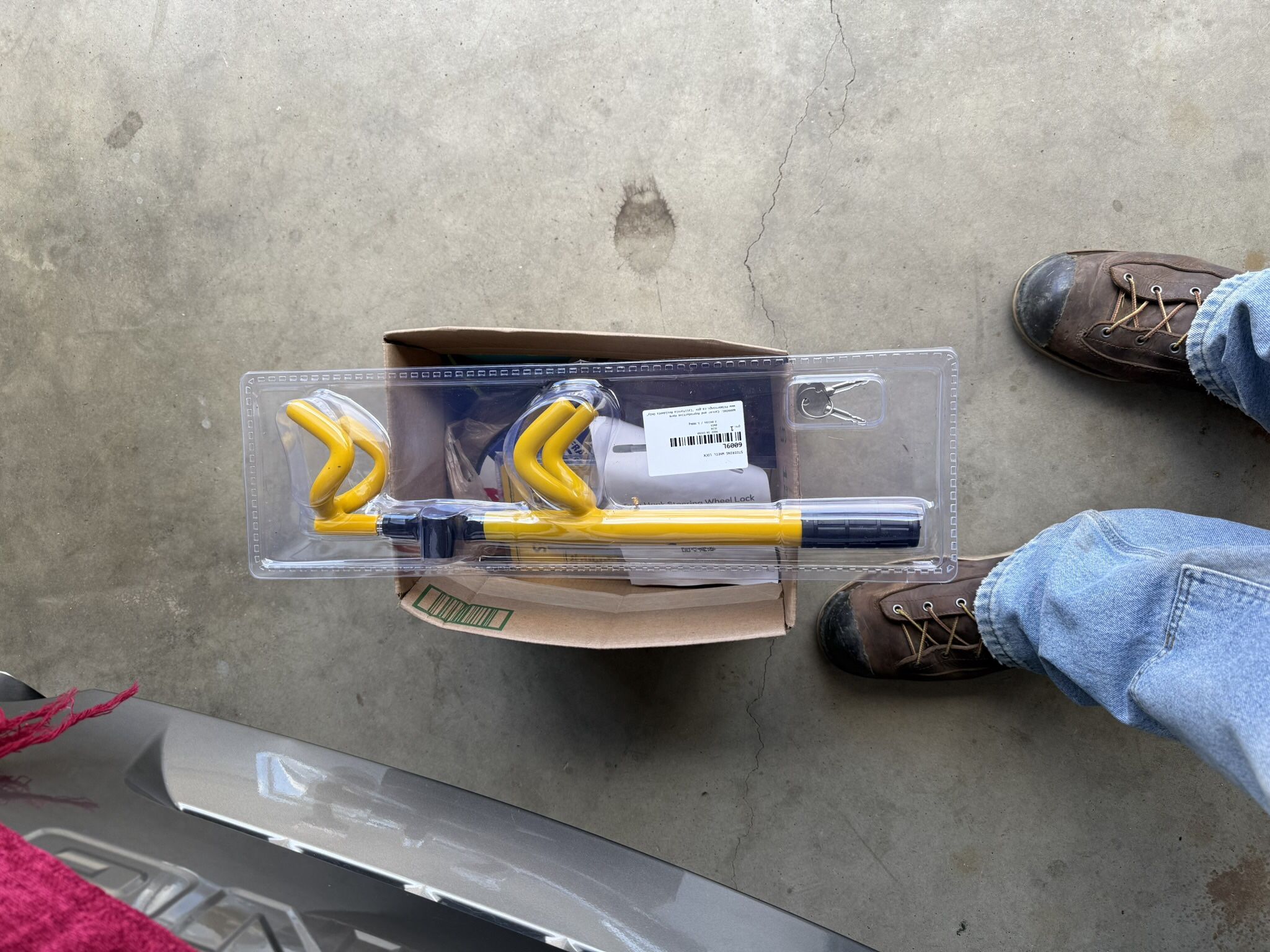 This high visibility steering wheel lock should deter any would be thieves .