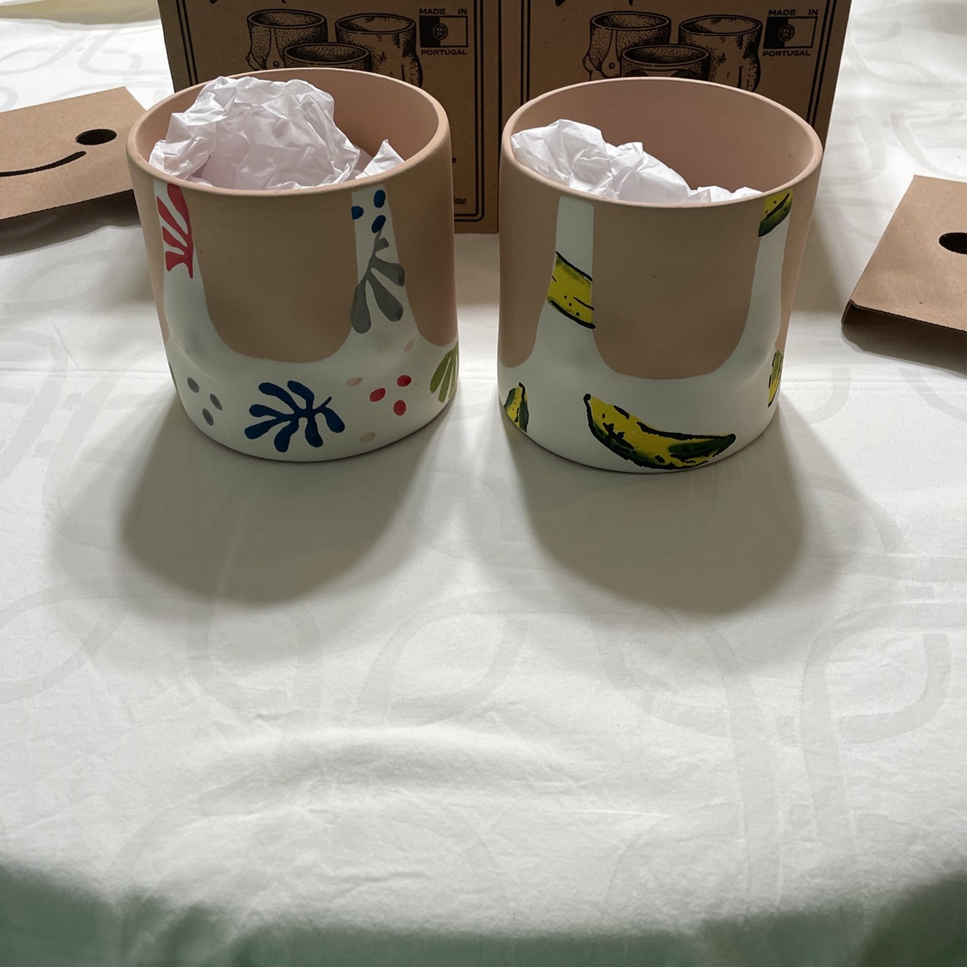 A pair of fun summer pots for your plants. No drainage hole. Just decided not to use them.