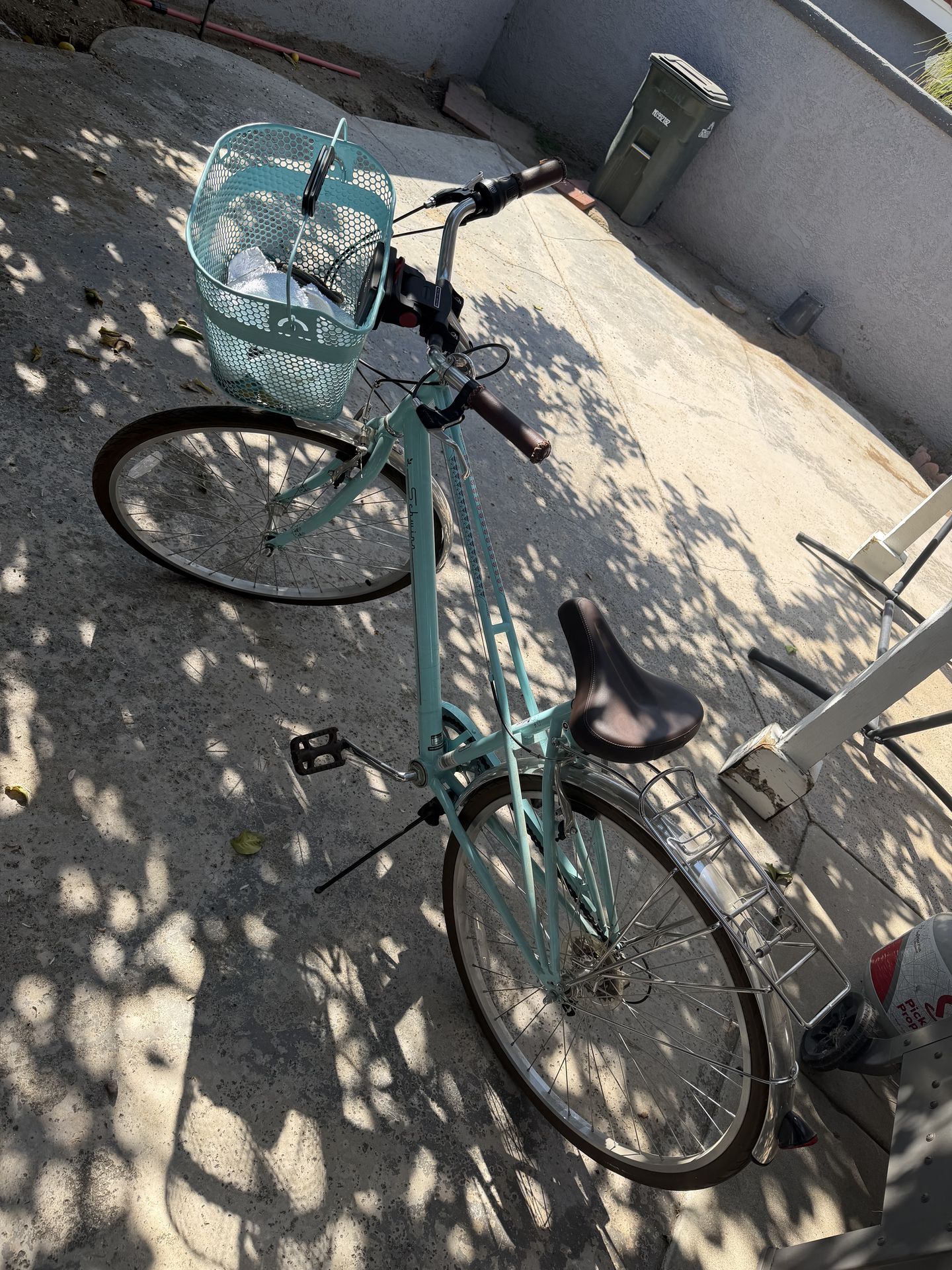 Baby blue women’s bike. In great condition, all tires inflated. Never been damaged. Has been kept inside garage, sold as-is.