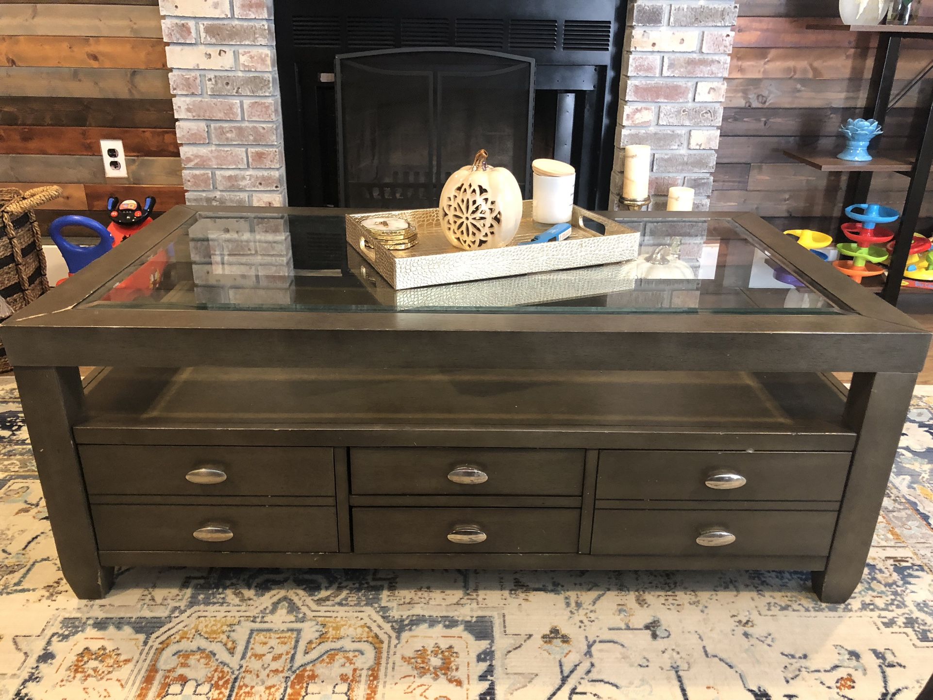 Used coffee table (4x2) with six drawers, lots of storage.