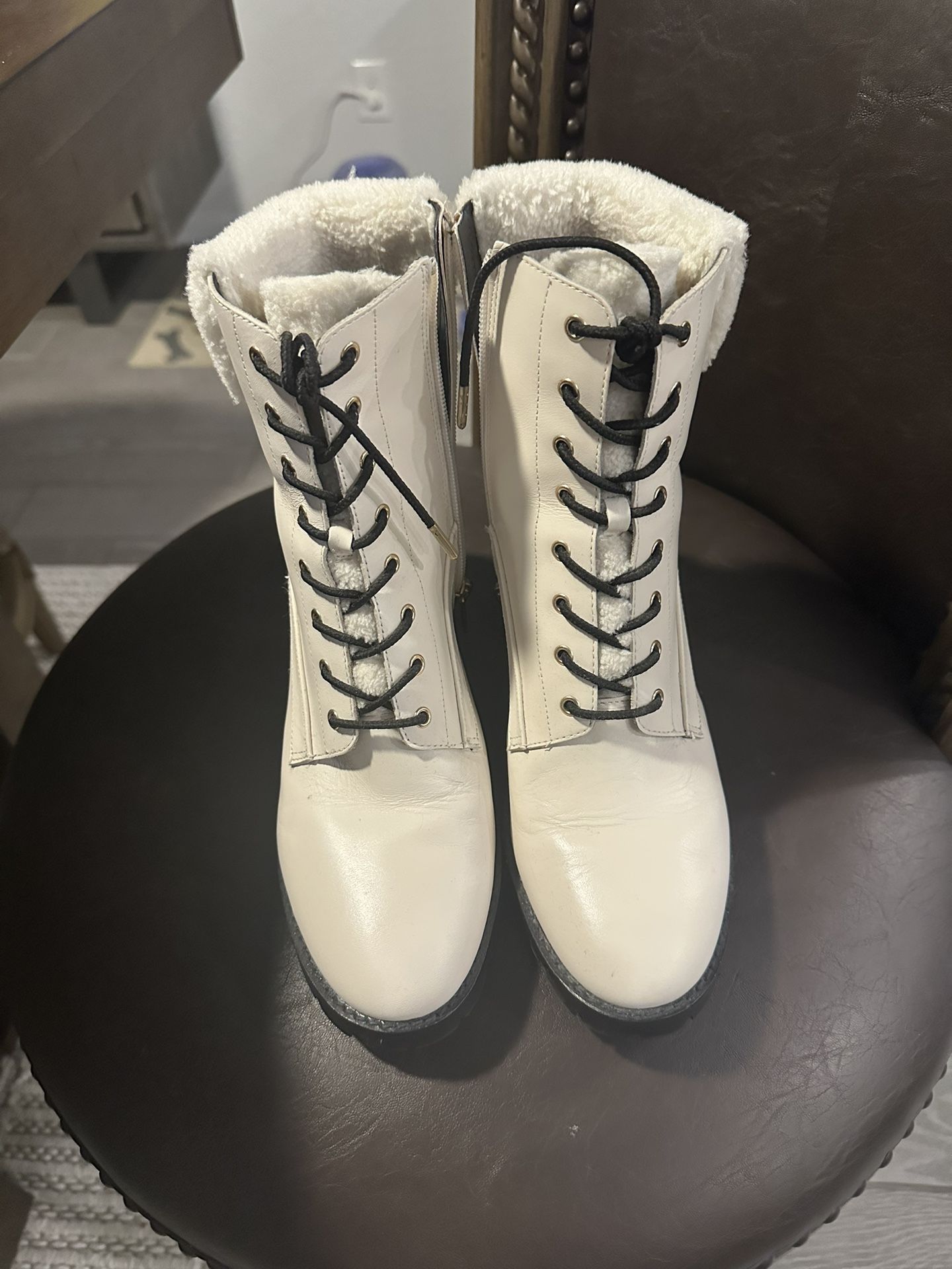 Coach Ivory Leather Fur Bootie - Super Cute Excellent Shape