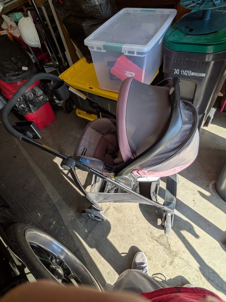 Yes a complete set of a baby car chair. Used but in great shape. Has car chair with base for easy use. Has stroller for that chair and I'm including an extra adjustable height stroller for it as well. Everything is in the pictures. We got this new at Walmart for $399.99 need it gone all of it for $50 come see it yourself. No rips nothing broken works perfect.