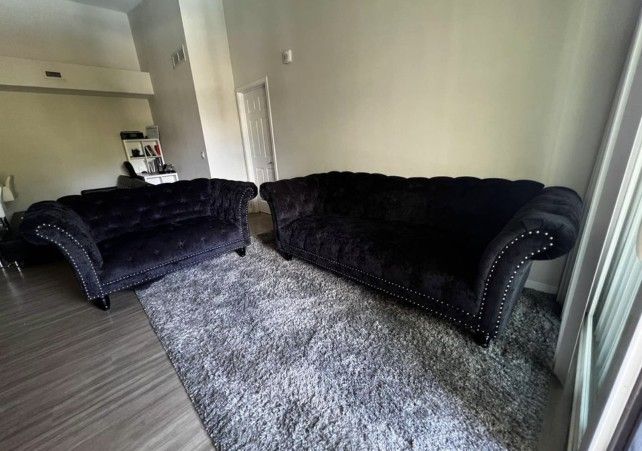 Sofa and loveseat Black High quality Price listed is down payment Pass by for total pricing Living Room: Selections from sectionals, sofas, loveseats, coffee tables, recliners, and TV consoles, all available for immediate delivery. Dining Room: Explore dining sets in: glass and wood, dining tables for gatherings for 2 or more all conveniently in stock. Bedrooms: Mattresses in all sizes (twin, full, queen, king) various comfort options: memory foam, pillow tops, standard tight tops, and more Complete bed sets in Black, White, Gray, Cappuccino, and more ready for pickup or delivery today. Visit us now to discover the perfect furniture pieces to elevate your living space