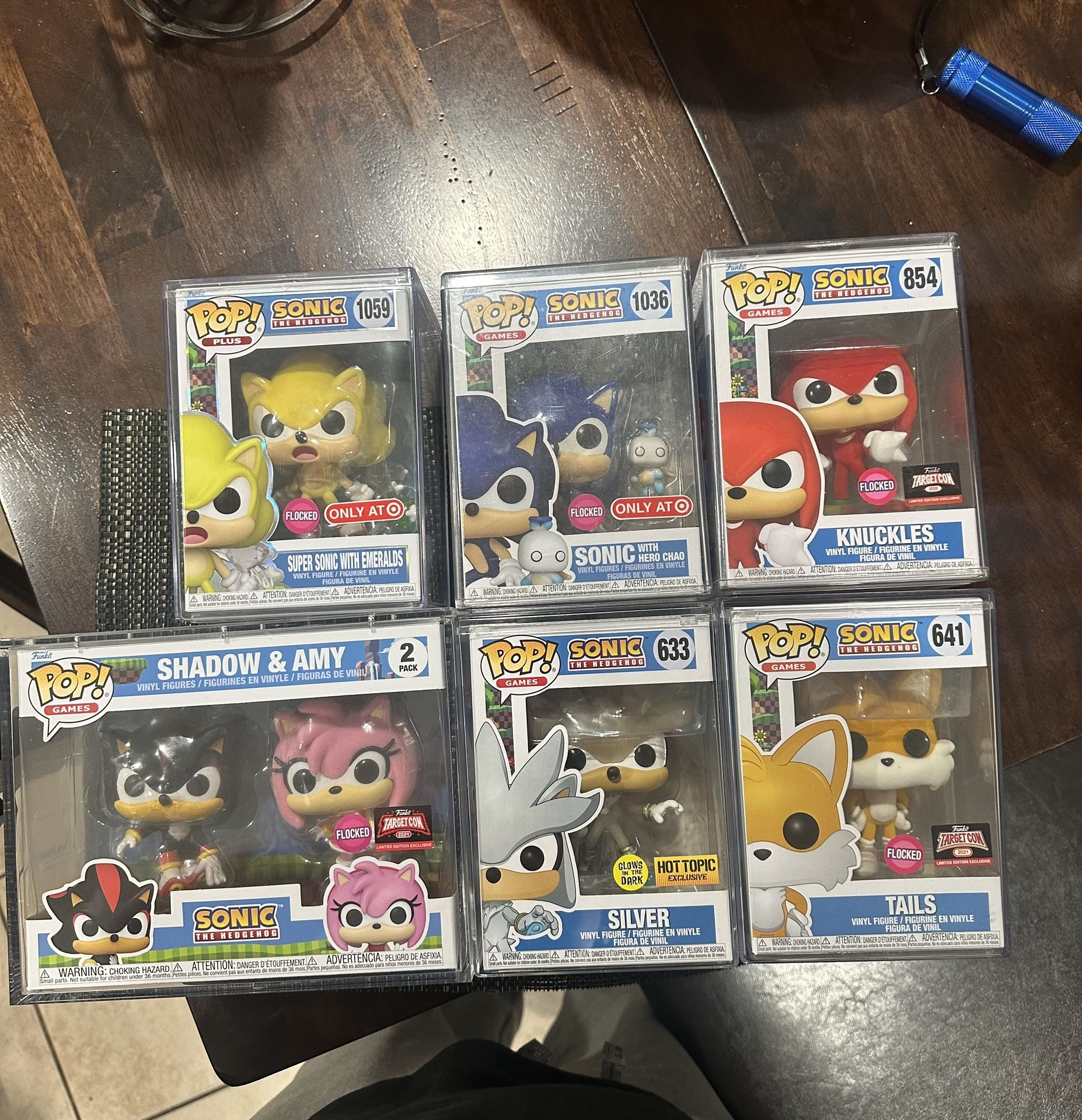 Super Sonic with emeralds- Target Exclusive Sonic with hero chao - Target Exclusive Knuckles - Target Exclusive Silver - HotTopic Exclusive (Glow) Tails - Target Exclusive Shadow & Amy - Target Exclusive All in Mint Condition & Come With Protectors! Looking to sell as a bundle Asking $100