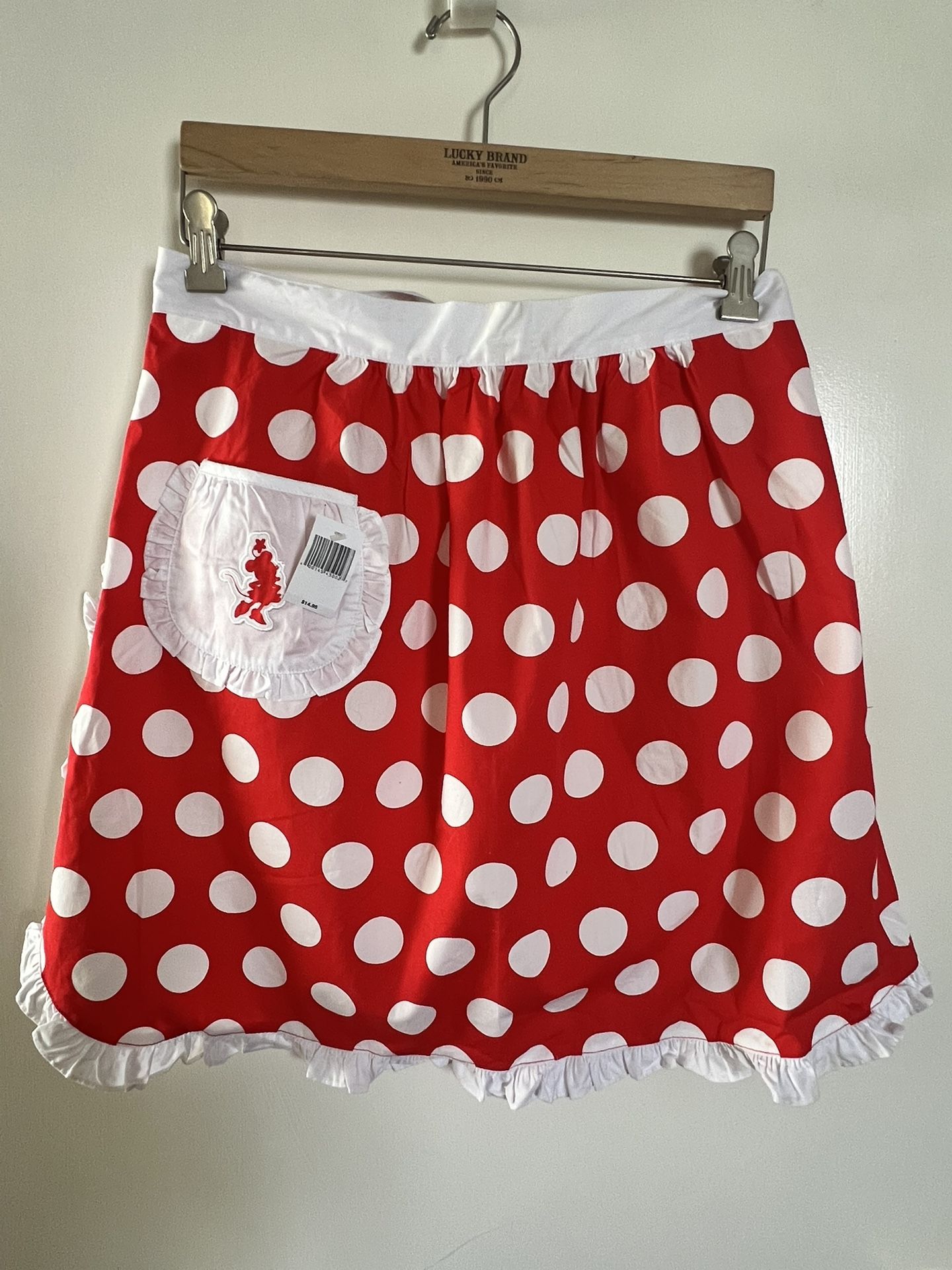 Charming Minnie Mouse inspired waist apron! Featuring Minnie’s signature red-and-white polka dots, this mini waist apron is as cute as it is practical. Condition: Brand new with tags! The only note is a few light stains on the back waistband (removable with a little extra TLC). They don’t affect the wear or the overall adorable look of the apron. 🎀 Features: • Classic Minnie Mouse polka dot design • Comfortable waist tie fit • Fun, playful style that makes cooking feel magical Pick up only, City Heights