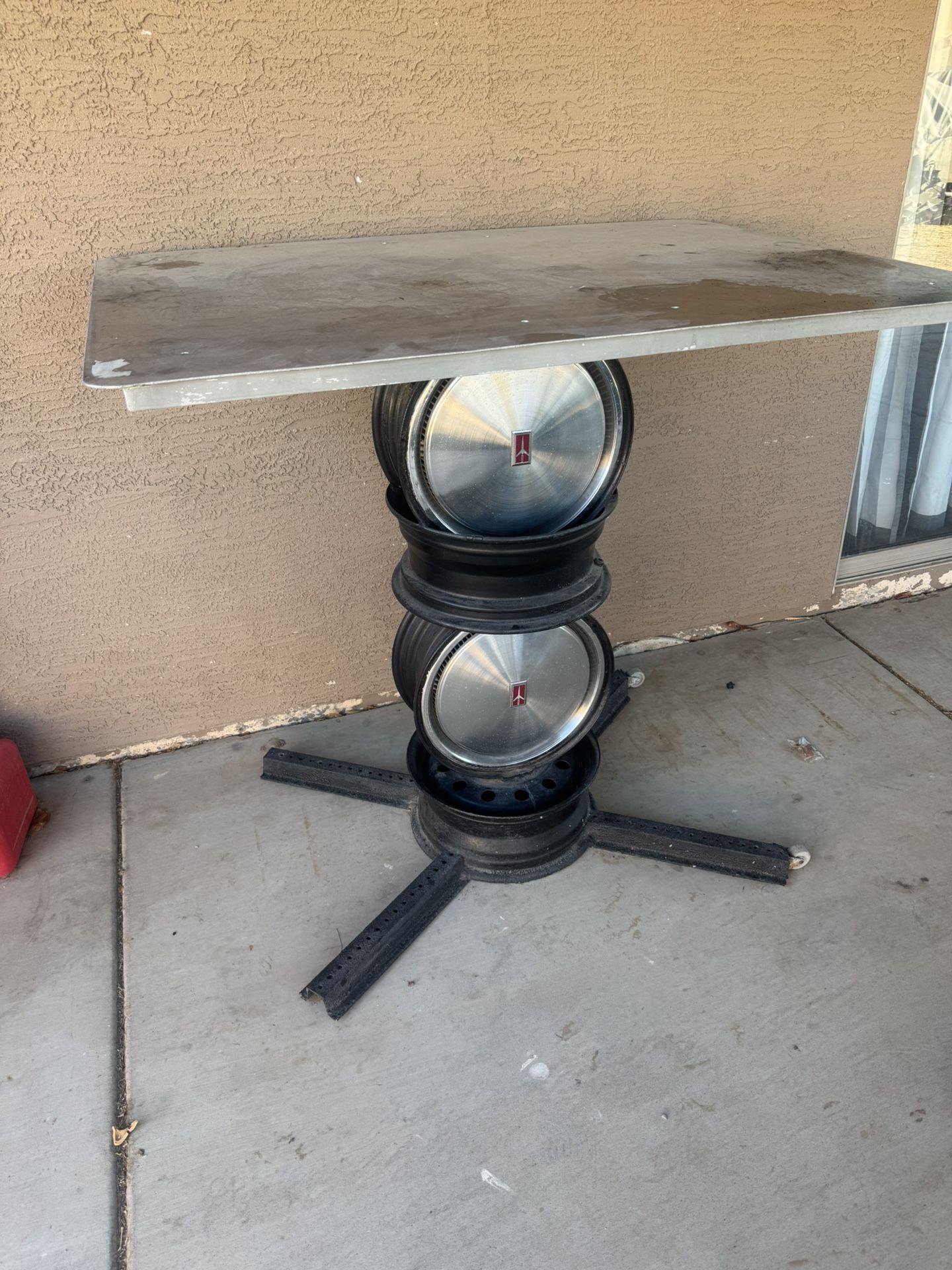 Outside Table, Oldsmobile Hubcaps One Of A Kind