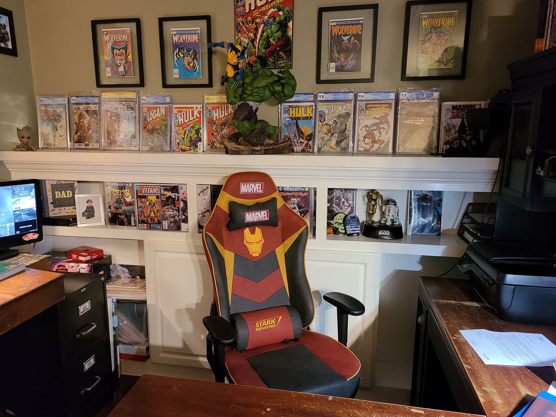 Iron man Gaming chair Massage function Marvel official licensed! Brand new no box assemble required PRICE FIRM High end quality Unique Computer chair, office chair Great birthday gift Massage function Discontinued and out of production Worth collecting Get yours before it sells out Black panther,Captain Marvel,Spider Man Available Iron man Display available