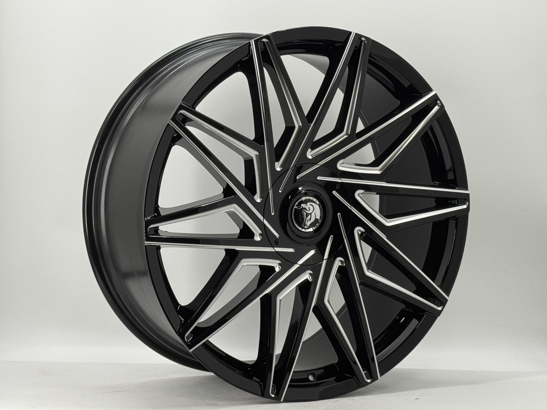 24" DIABLO WHEELS STYLE 241 24x10 Gloss Black MILLED Finish with Floating center cap