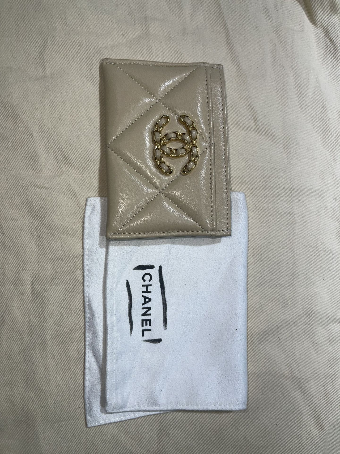 Chanel Goatskin Quilted 19 Card Holder Beige