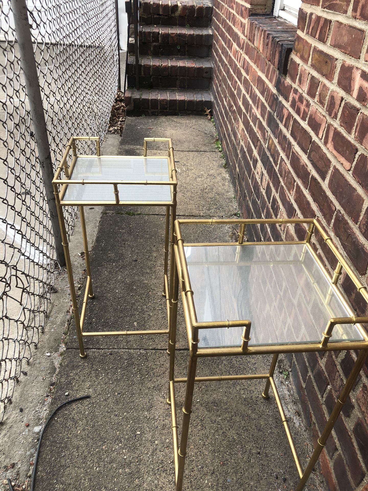 Gold Metal And Mirror Bamboo Style End Tables