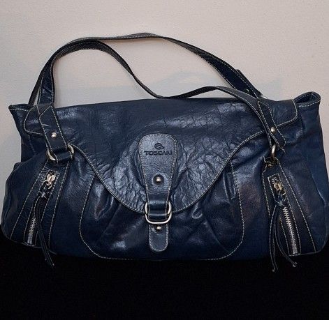 TOSCANI GENUINE ITALIAN LEATHER NAVY SATCHEL HANDBAG $30 OBO