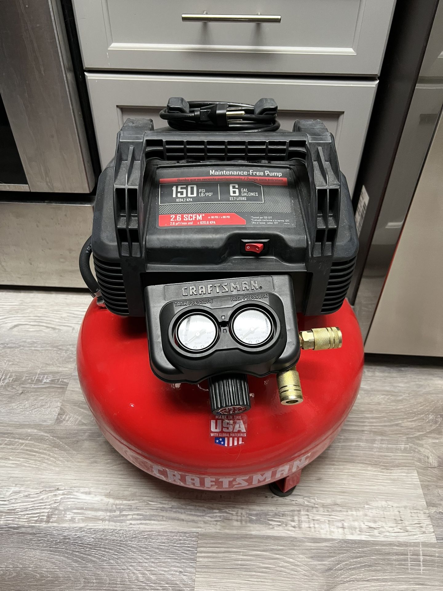 6 gallon air pancake style air compressor. Only used a few times for small projects.